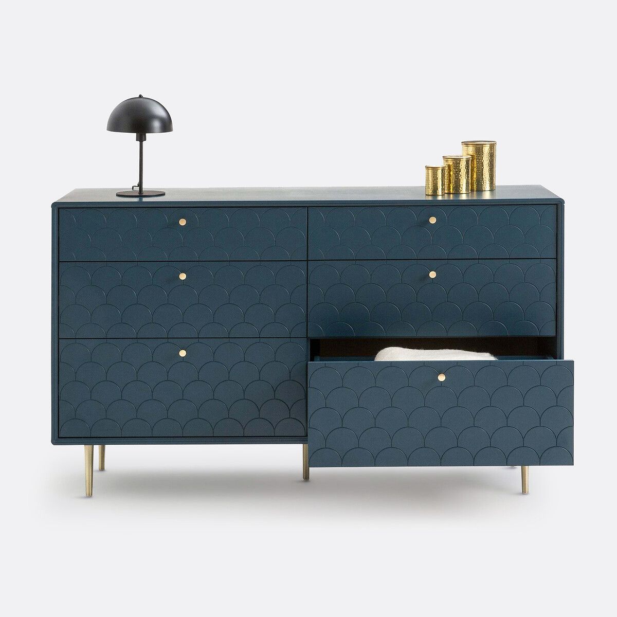 Дизайнерский комод с 6 выдвижными ящиками и латунной фурнитурой придаст комнате эффектный облик. У нас можно купить товары из коллекции LUXORE и другую мебель в стиле винтаж.