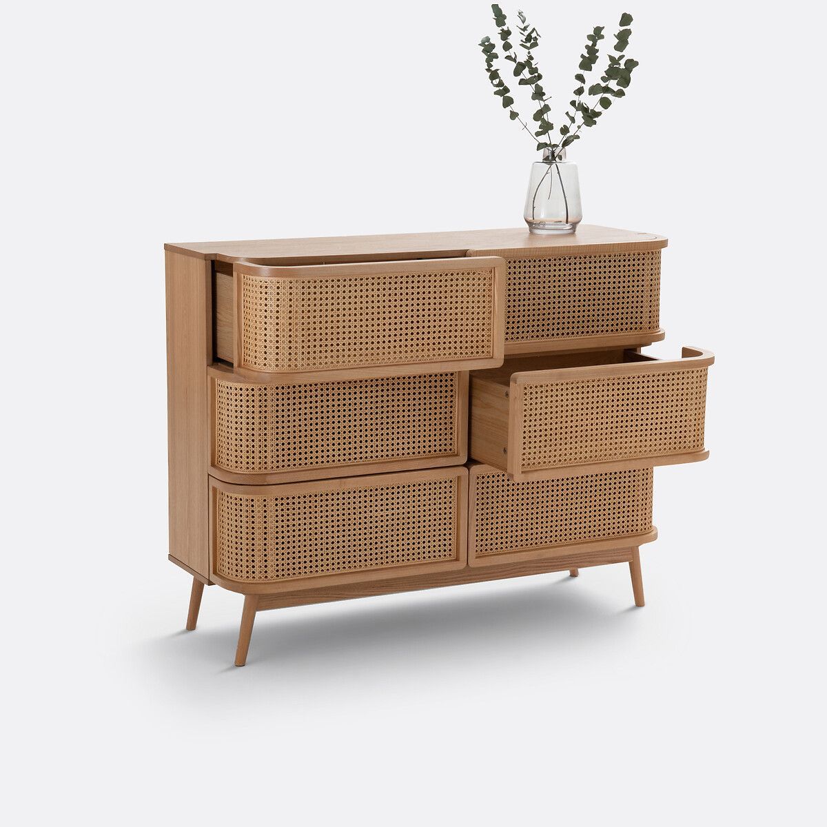 Модель сочетает геометричные ажурные формы плетеного ротанга, мягкие полутона с игрой светотени и сдержанная палитра. Laora — это история о трендах в балансе с природой, которые вместе гармонично дополнят пространство гостиной или столовой. Доверьте любимые вещи утонченному комоду, который надежно сохранит их и защитит от пыли и влаги.