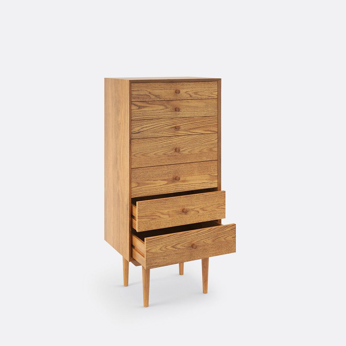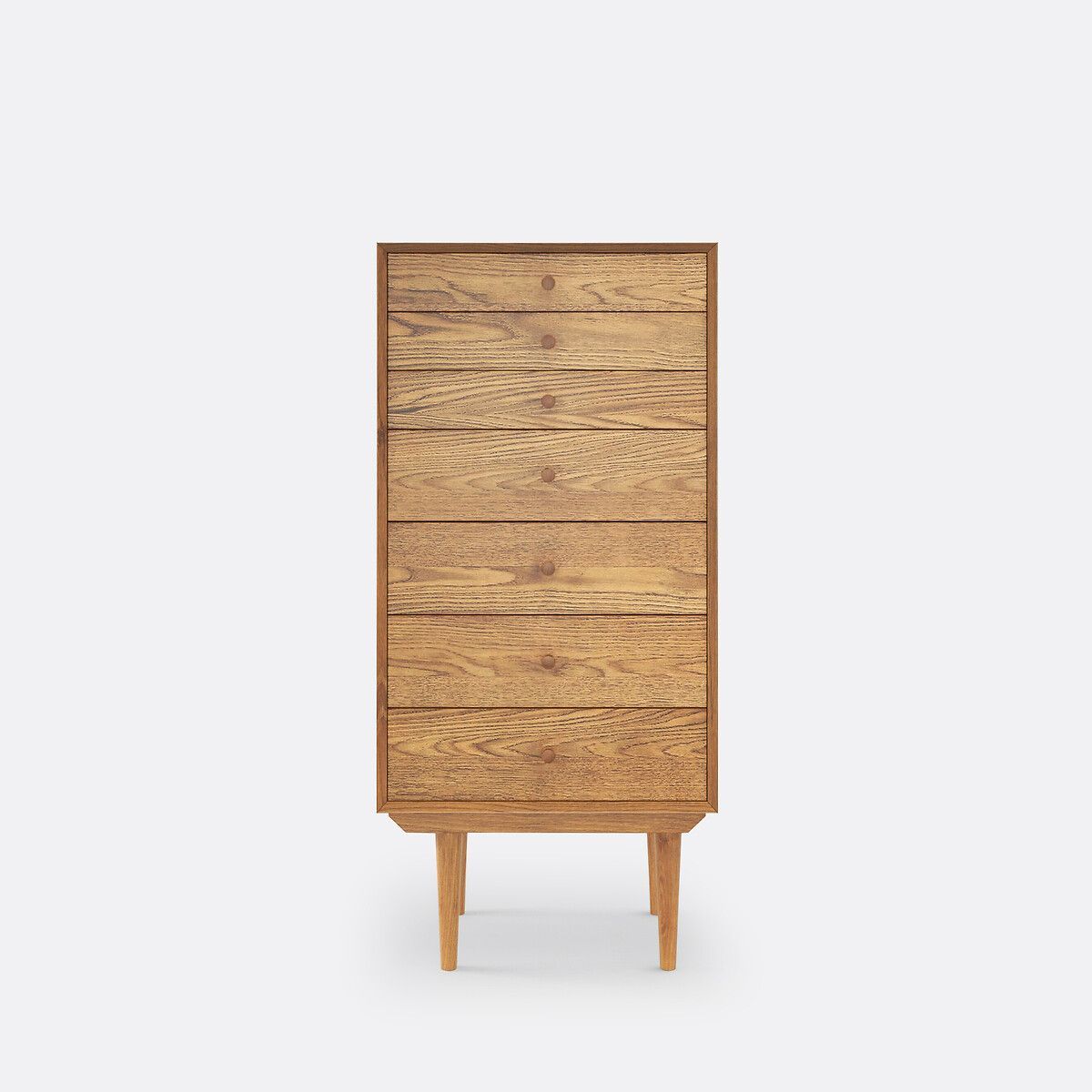 Этот красивый винтажный комод сочетает отделку дуб и веретенообразные ножки в стиле 50-х годов. Элегантный и оригинальный высокий комод с 7 ящиками для хранения.