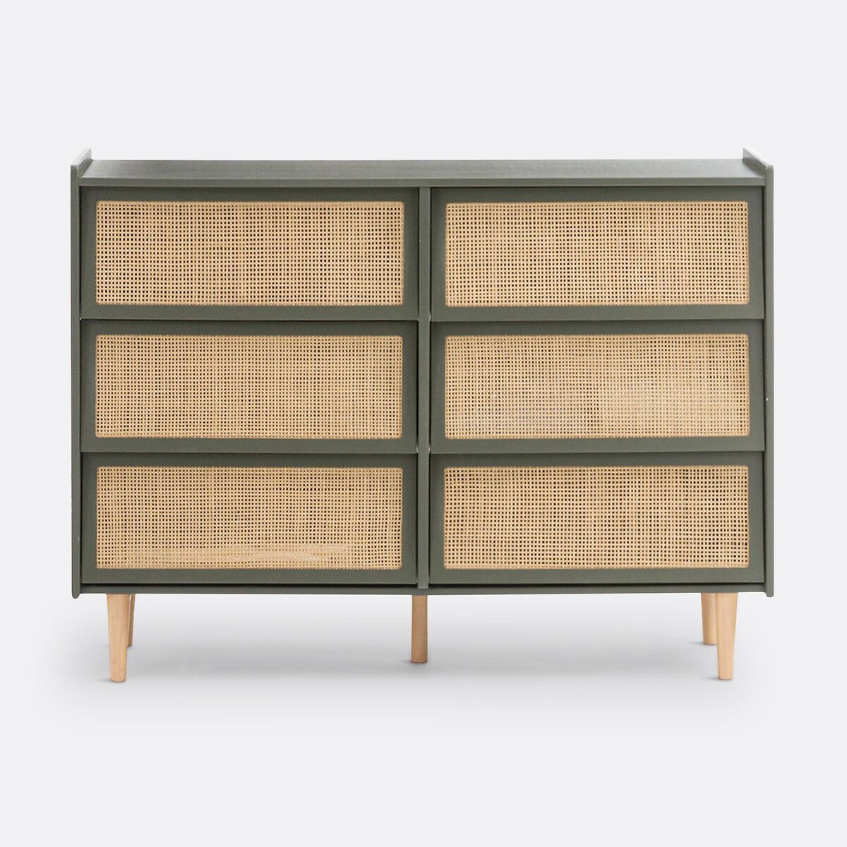 Сочетание окрашенного дерева и натурального ротанга, строгие линии: в комоде Taga есть все, чтобы нравиться взрослым и детям!