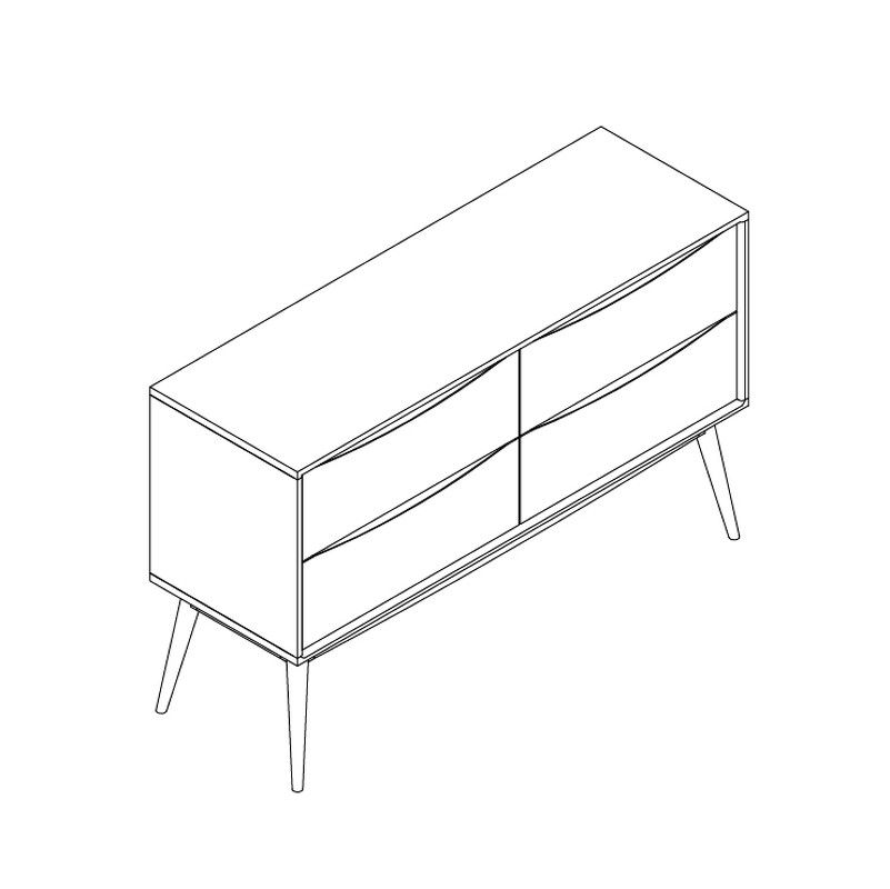 Комод оснащен 4 ящиками с системой soft-close, которая обеспечивает плавное и бесшумное закрытие, добавляя предмету не только удобство, но и нотку роскоши.