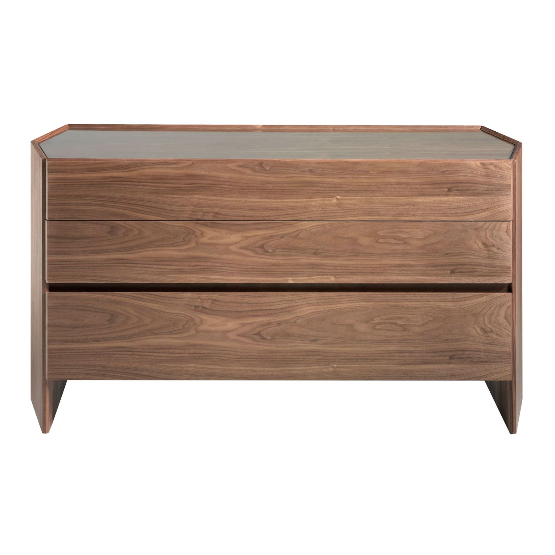 Шестиугольный комод современного дизайна из МДФ и орехового шпона толщиной 0,5 мм и оригинальная шестиугольная столешница из закаленного стекла. Комод в элегантном и изысканном стиле идеально подходит для добавления тепла и стиля, которые вы ищете в свою комнату, а также для поддержания порядка благодаря большому пространству для хранения с тремя передними ящиками с системой открывания нажатием и мягким закрытием.