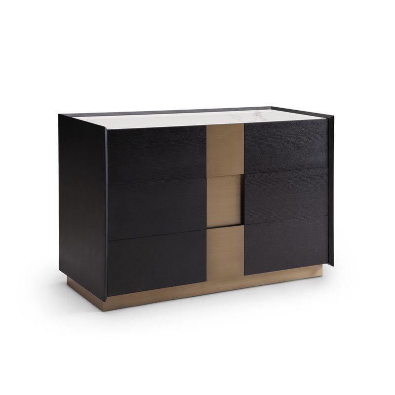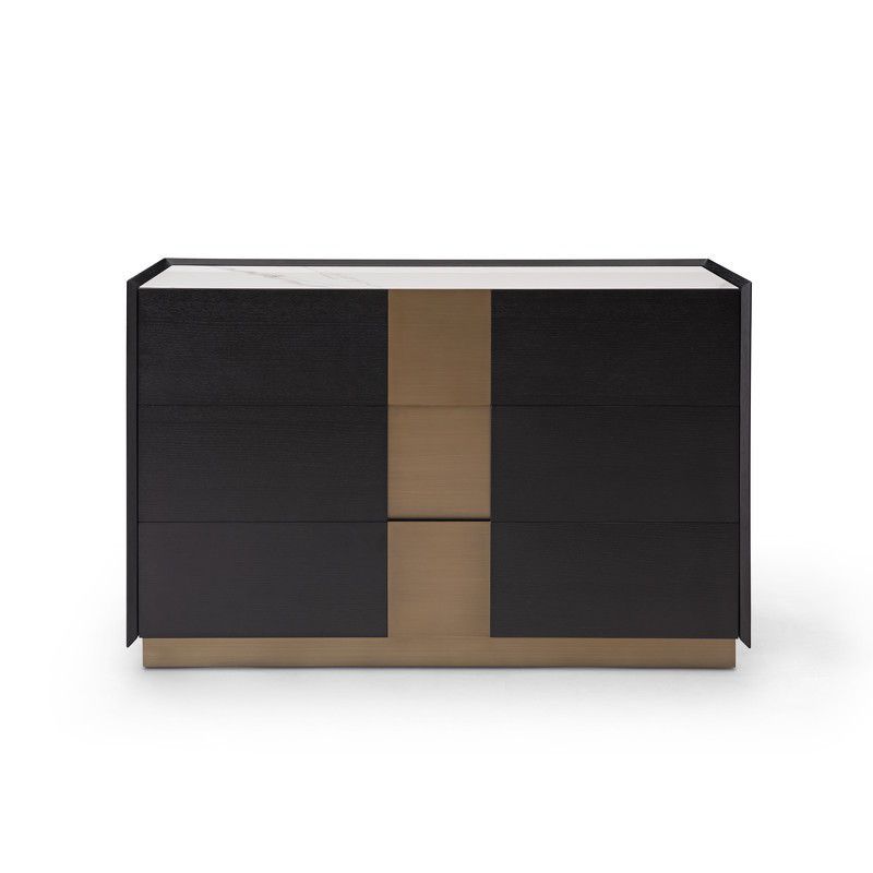Комод изготовлен из высококачественного МДФ в шпоне ореха, ручки и цоколь выполнены из нержавеющей стали в цвете бронза. Отлично будет сочетаться с другими предметами мебели из коллекции Terni.