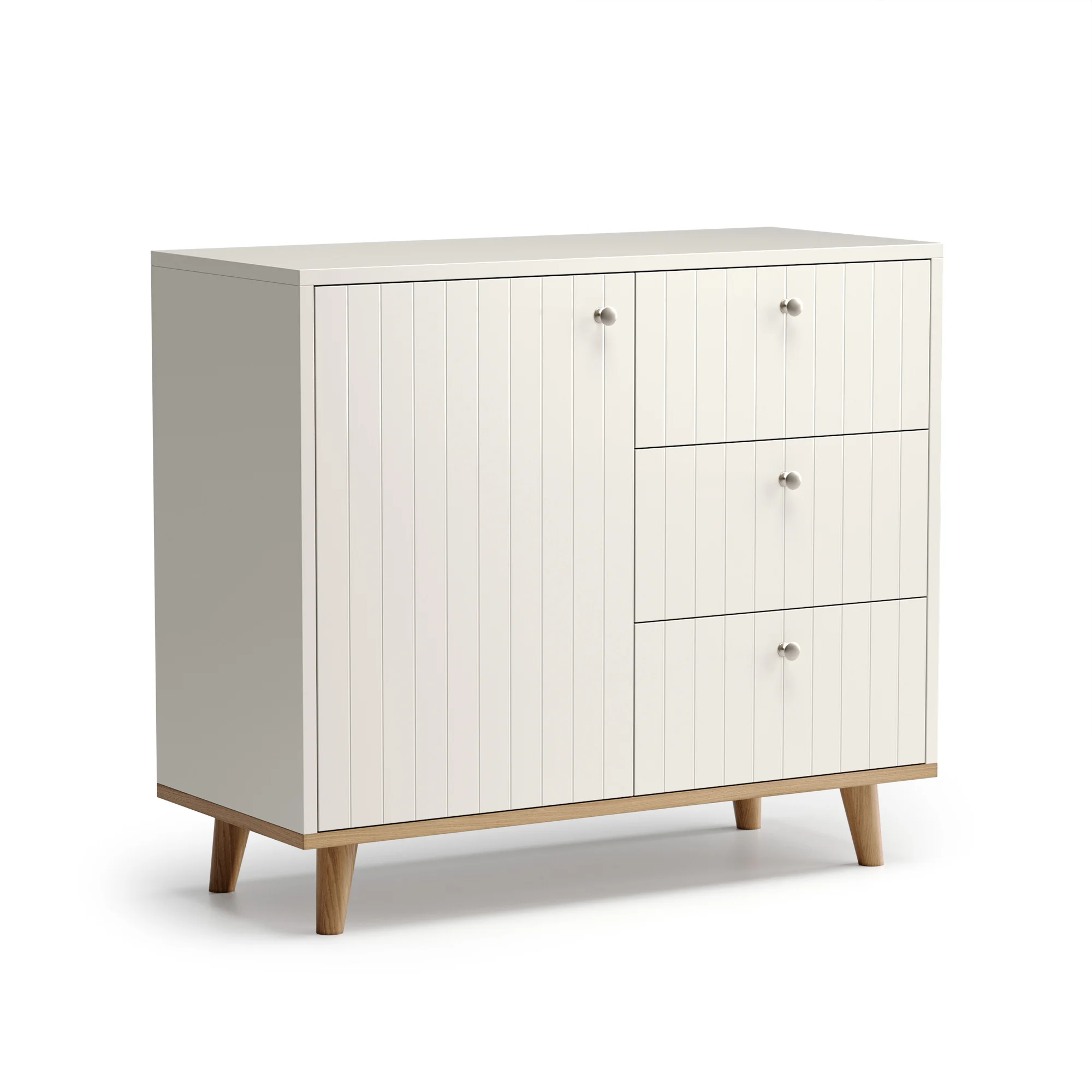 Отличительными особенностями коллекции TWIN являются лаконичный дизайн, декоративная гравировка на фасадах, основание, покрытое натуральным шпоном дуба, а также ножки, выполненные из массива дуба.
