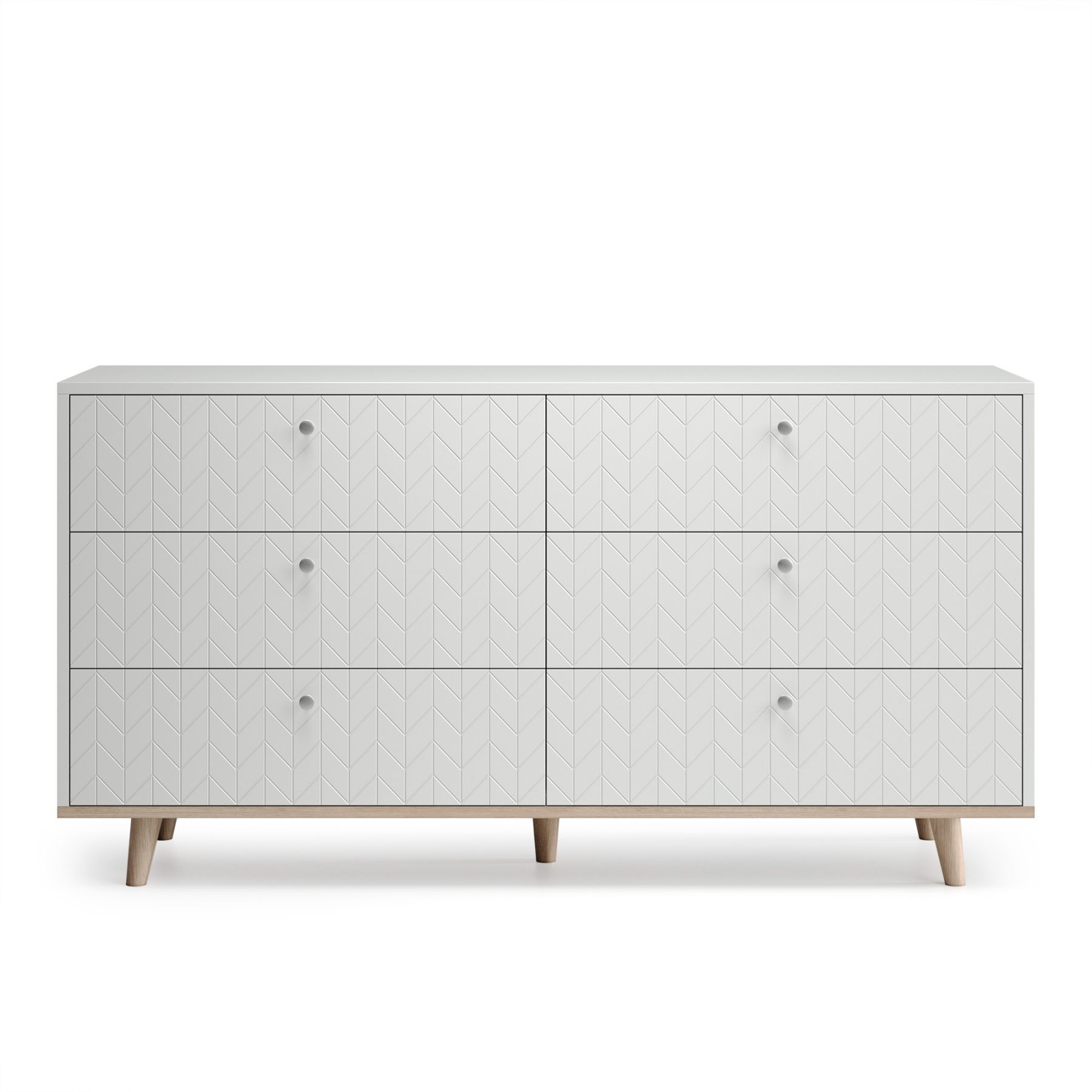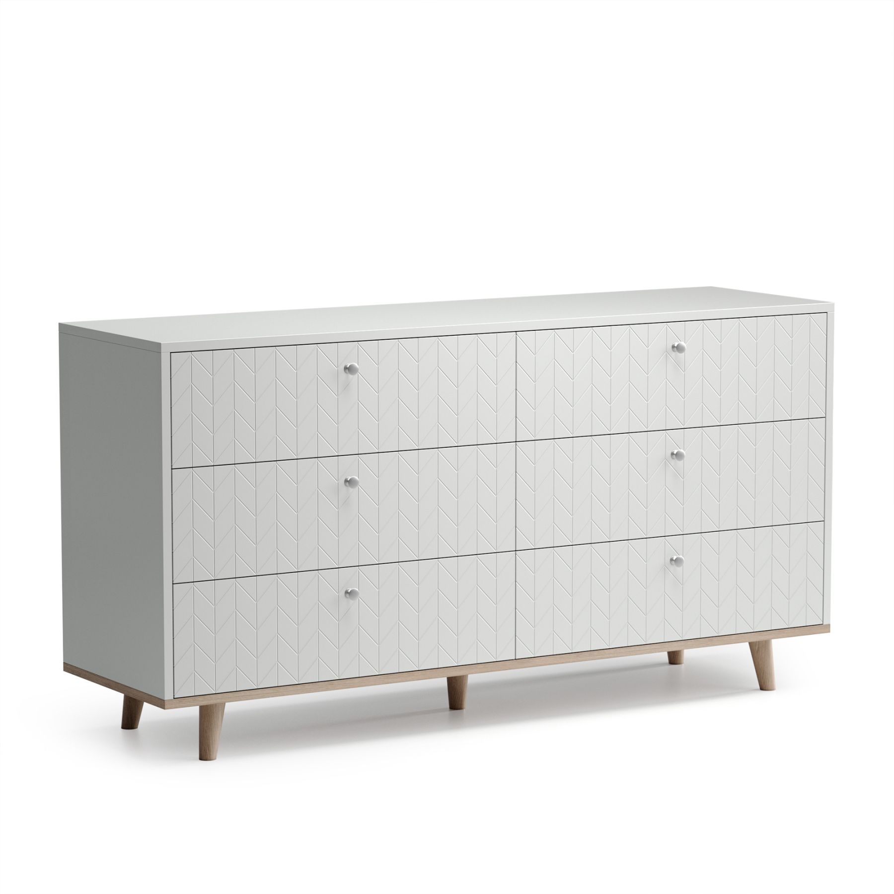 Комод поможет правильно организовать хранение вещей и станет украшением любого интерьера. Комод отличается высокой функциональностью за счет вместительных ящиков из прочного ЛДСП, которые уверенно выдержат нагрузку до 25 кг и способны вместить достаточно объемные вещи. Продуманные габариты ящиков позволяют использовать пространство максимально эффективно и разместить все необходимые вещи. Объемная гравировка на фасадах, благородная текстура дуба на основании дополняют сдержанный стиль комода.
