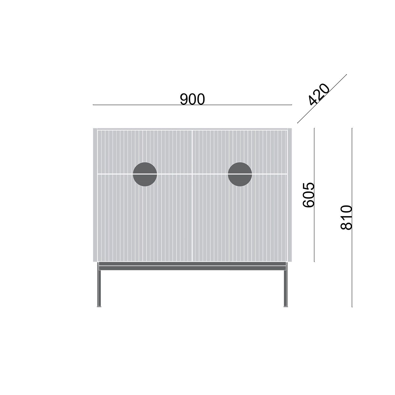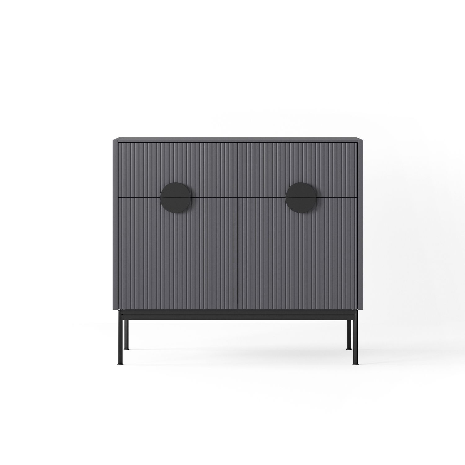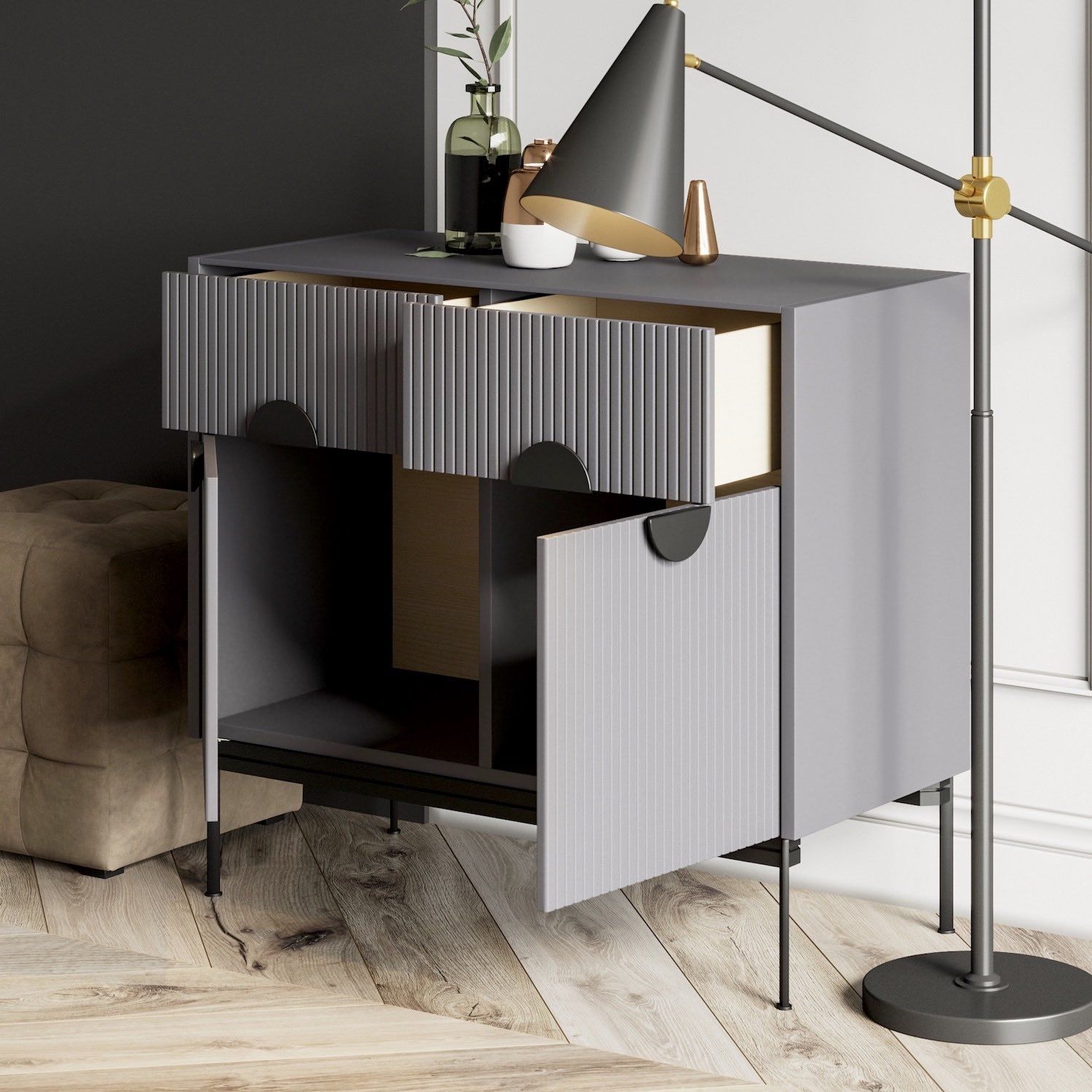 Оснащение комода: 2 выдвижных ящика с доводчиками и 2 распашных фасада. Корпус-серая эмаль Ral 7015