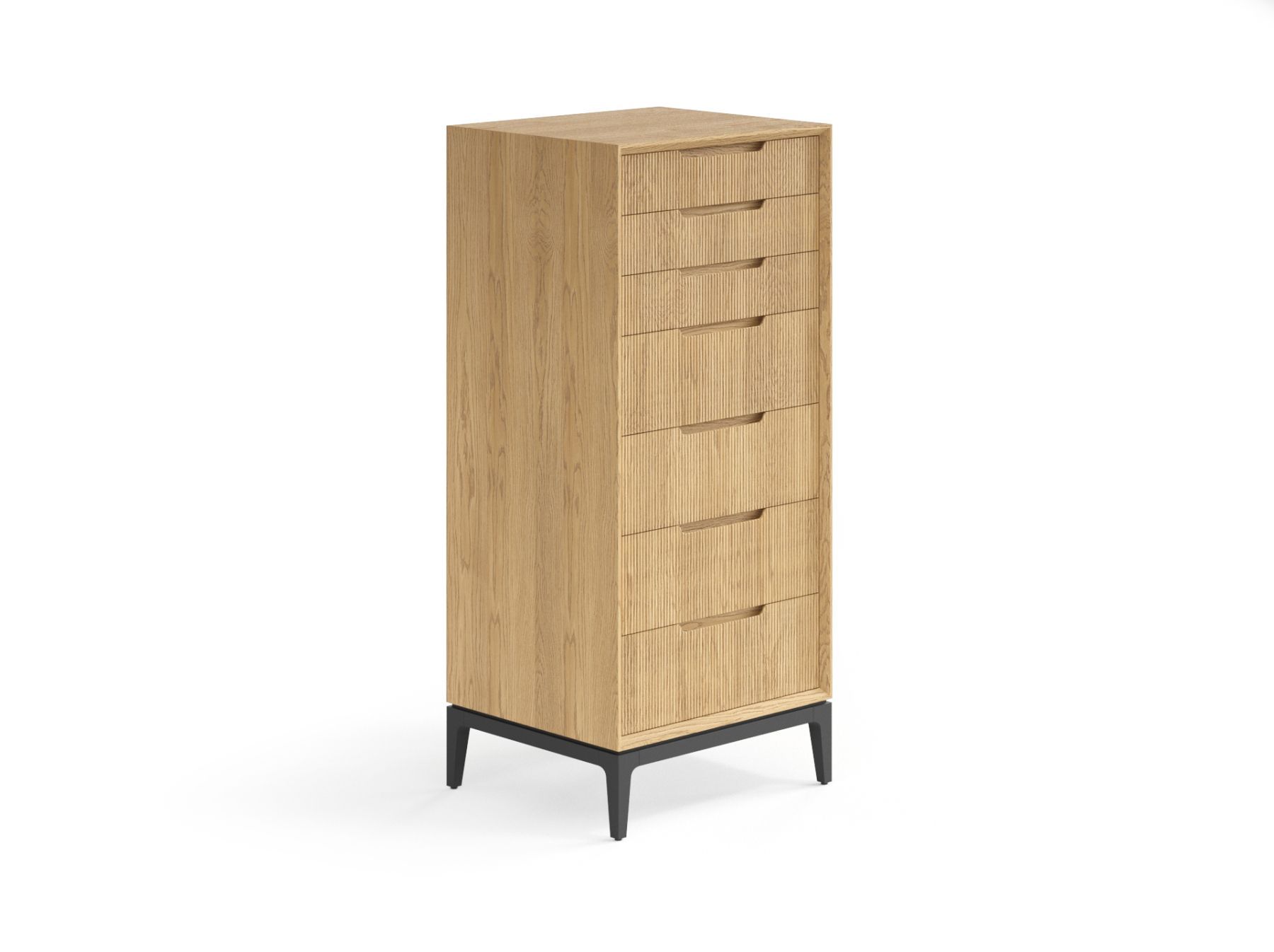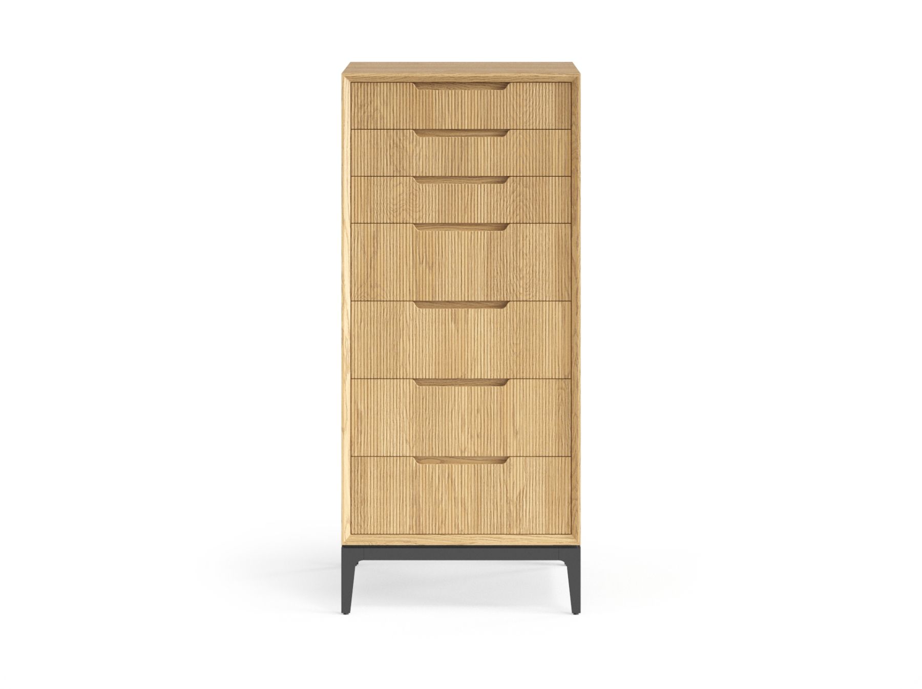 Высокий комод с семью ящиками украсит пространство и станет удобной системой хранения. Идеально впишется как в спальню или гостиную, так и в прихожую, не занимая много места в пространстве. Благодаря доступным вариантам отделок, изделие с использованием массива может быть выполнено в разных древесных оттенках: от соломенного до каштанового. Тёплый цвет мебельного изделия добавит свою частичку уюта в помещение.