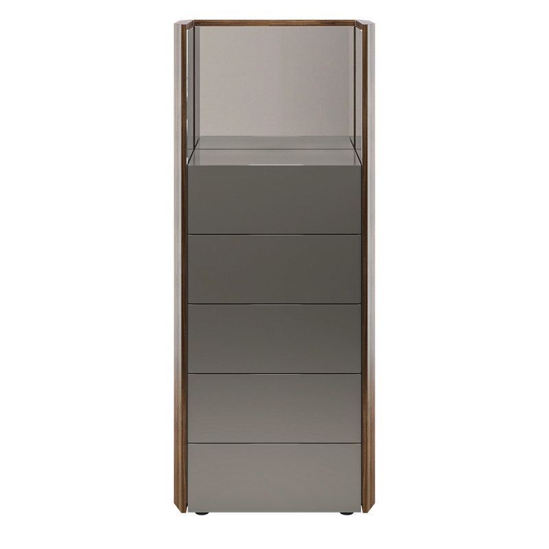 Комбинированный дизайн из глянцевого лака и древесины в шпоне натурального ореха. Высококачественная сертифицированная МДФ высокой плотности.
