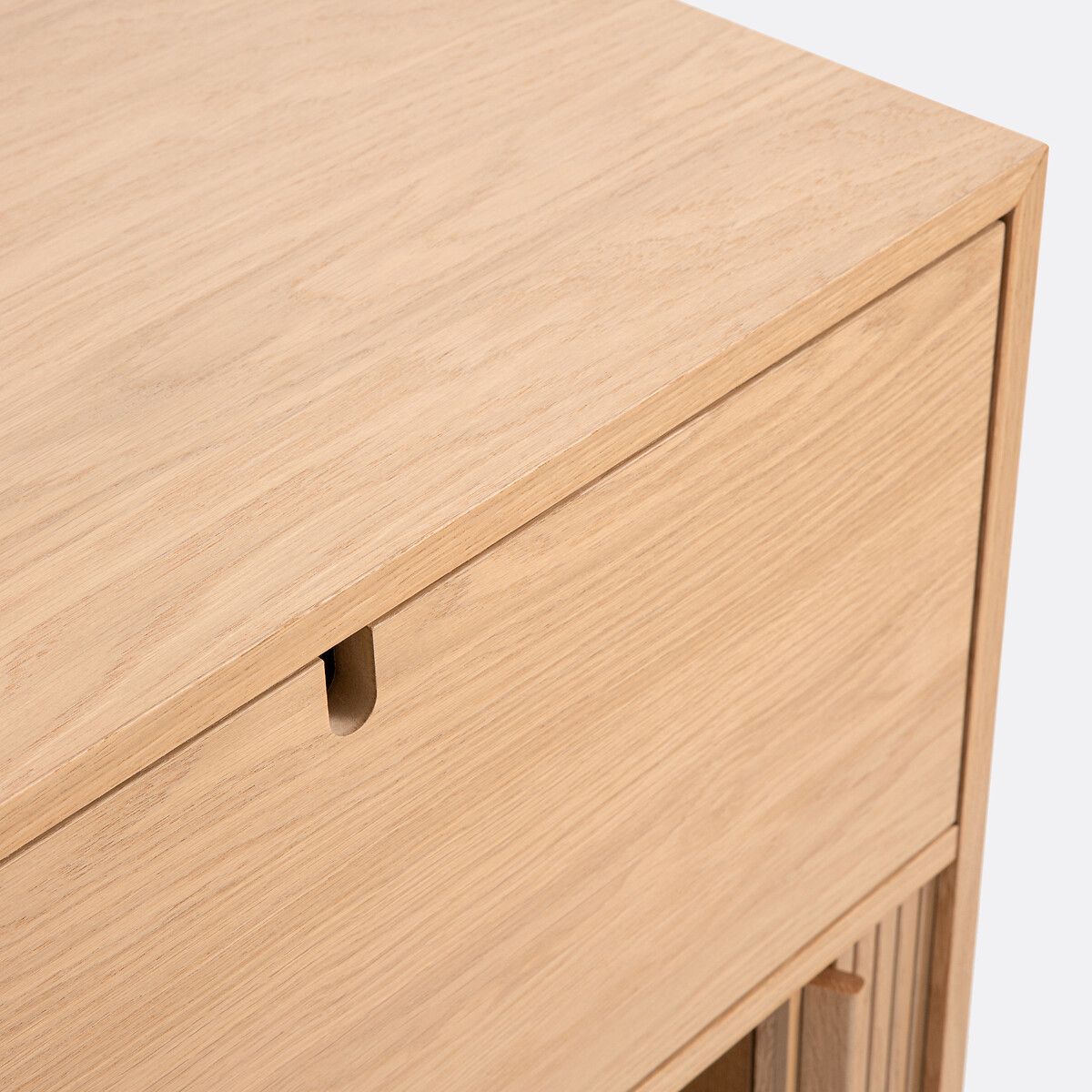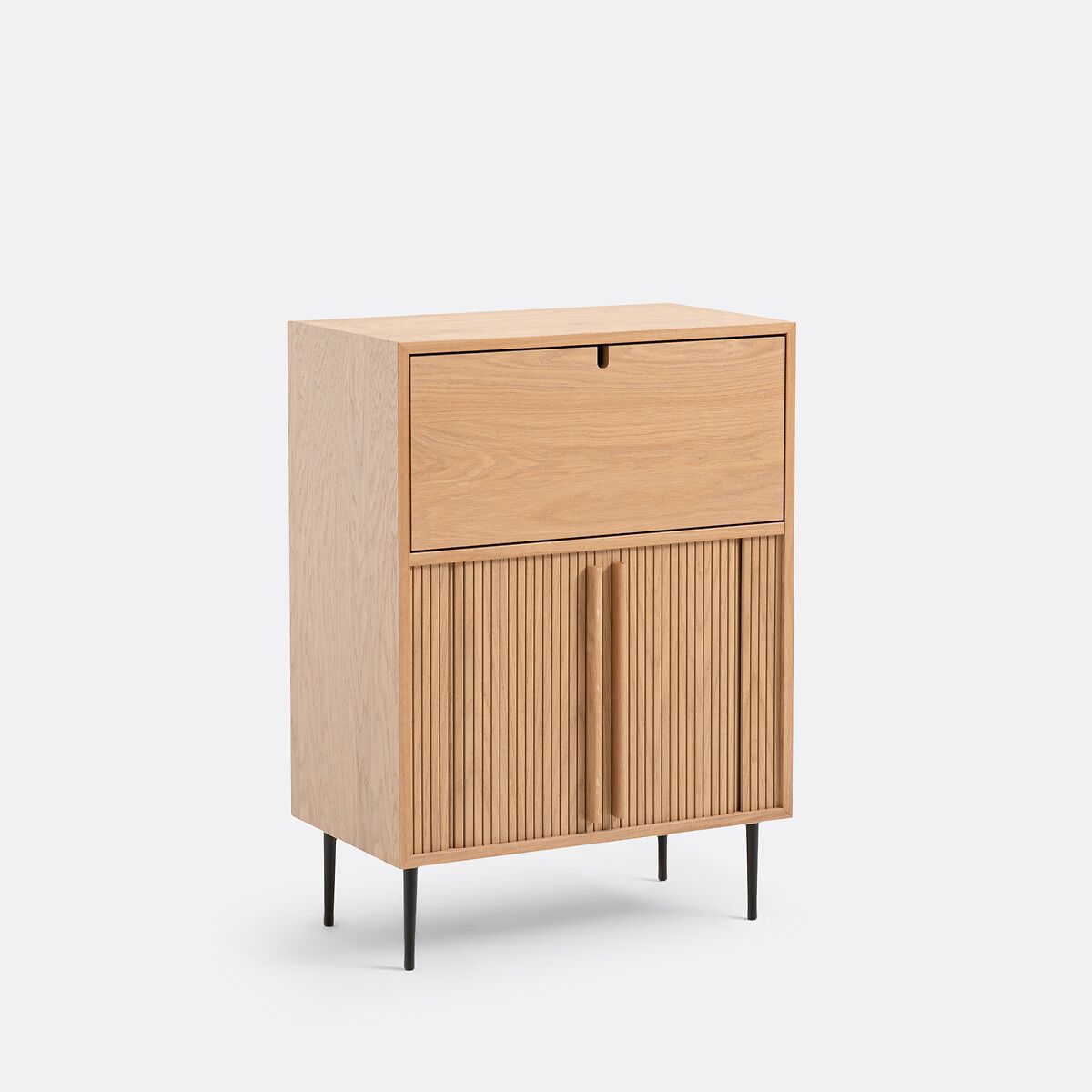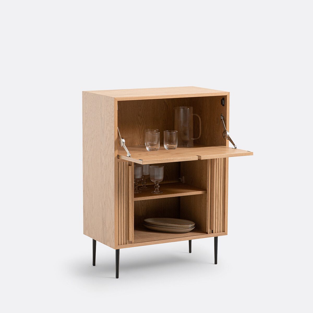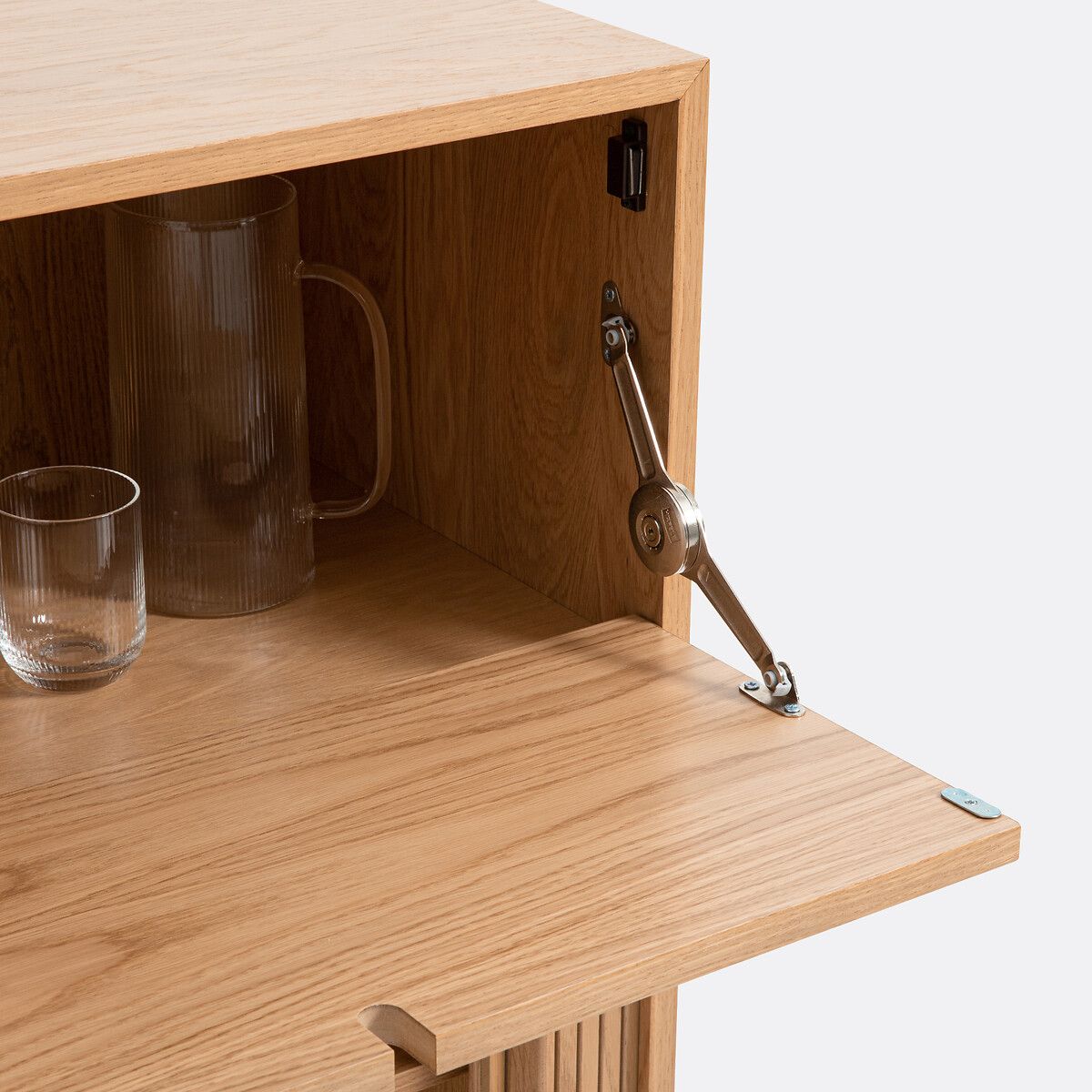 — Две раздвижные дверцы из реек из МДФ, шпонированной дубом, покрытие матовым лаком;