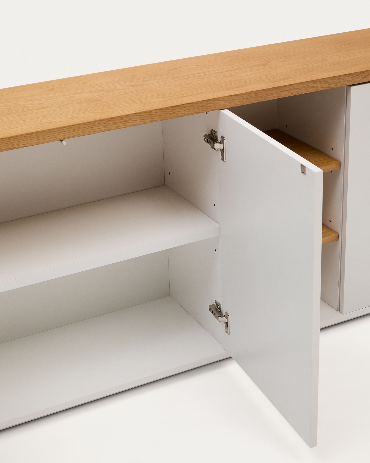 Сервант Abilen настолько насыщен по своему наполнению, что наверняка обеспечит удобное хранение ваших вещей в доме. Его длинная столешница применима для любых целей – будь это полка для любимых аксессуаров или место для телевизора. Лаконичный дизайн в светлом оформлении – это всегда большой плюс для обстановки. Пусть ваше пространство станет более светлым и упорядоченным!