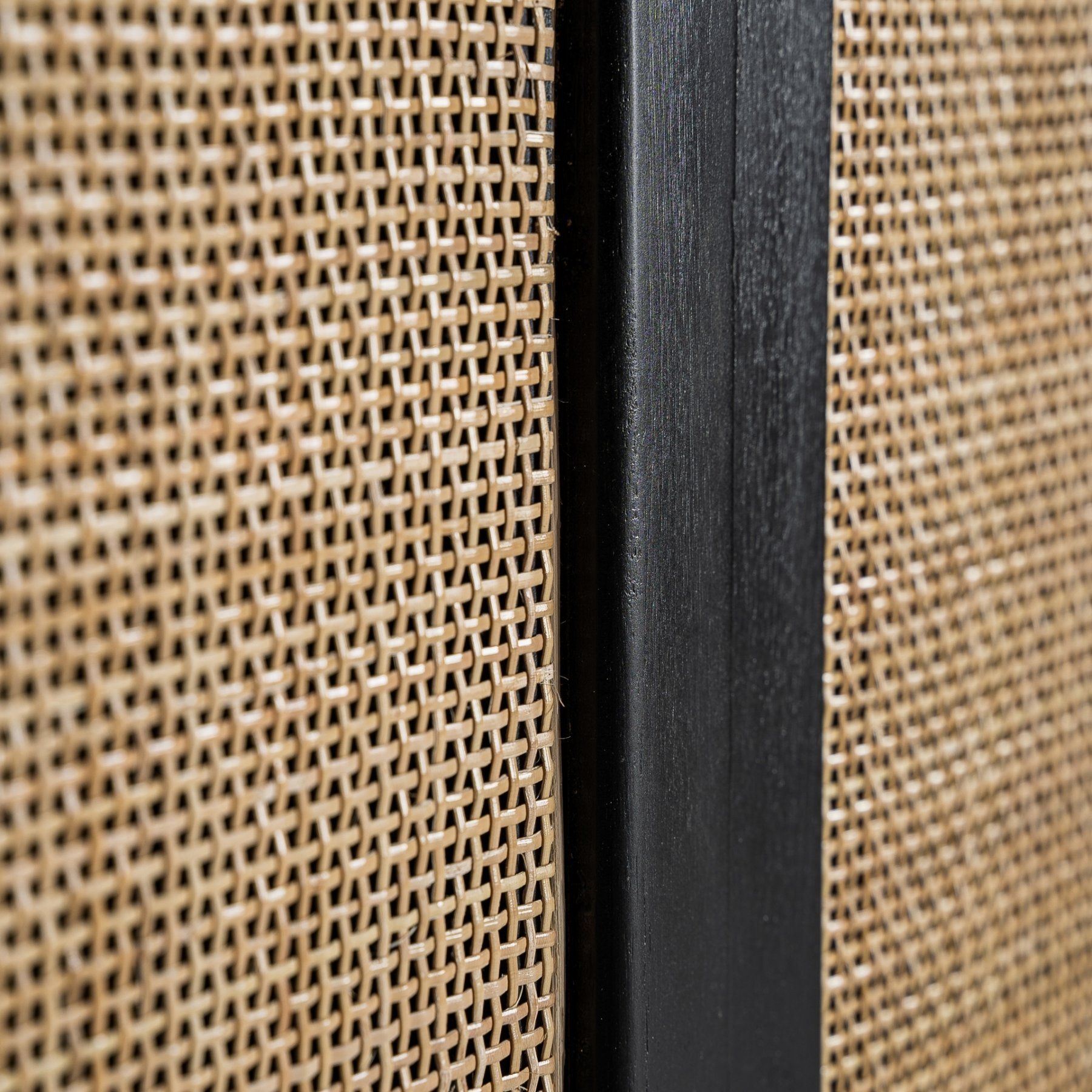 Комод Laissus, черный/коричневый, классический стиль. Изготовлен из древесины манго в сочетании с плетением и деревом DM.