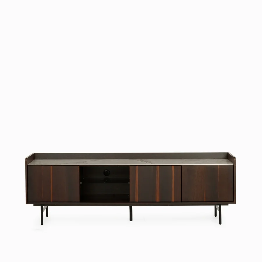 Тумба оборудована несколькими ящиками и полками для удобного хранения медиаплееров, игровых консолей, DVD-дисков и других аксессуаров.