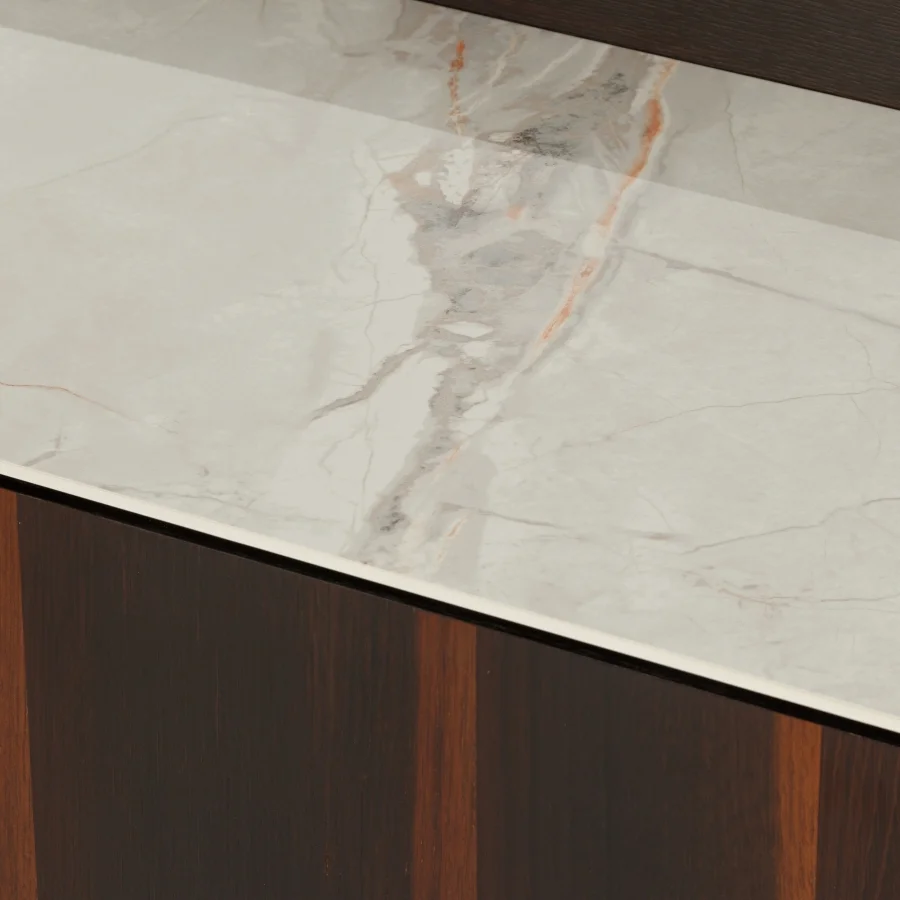 Лакированная поверхность и использование керамической панели обеспечивают легкость в уходе и защиту от загрязнений.