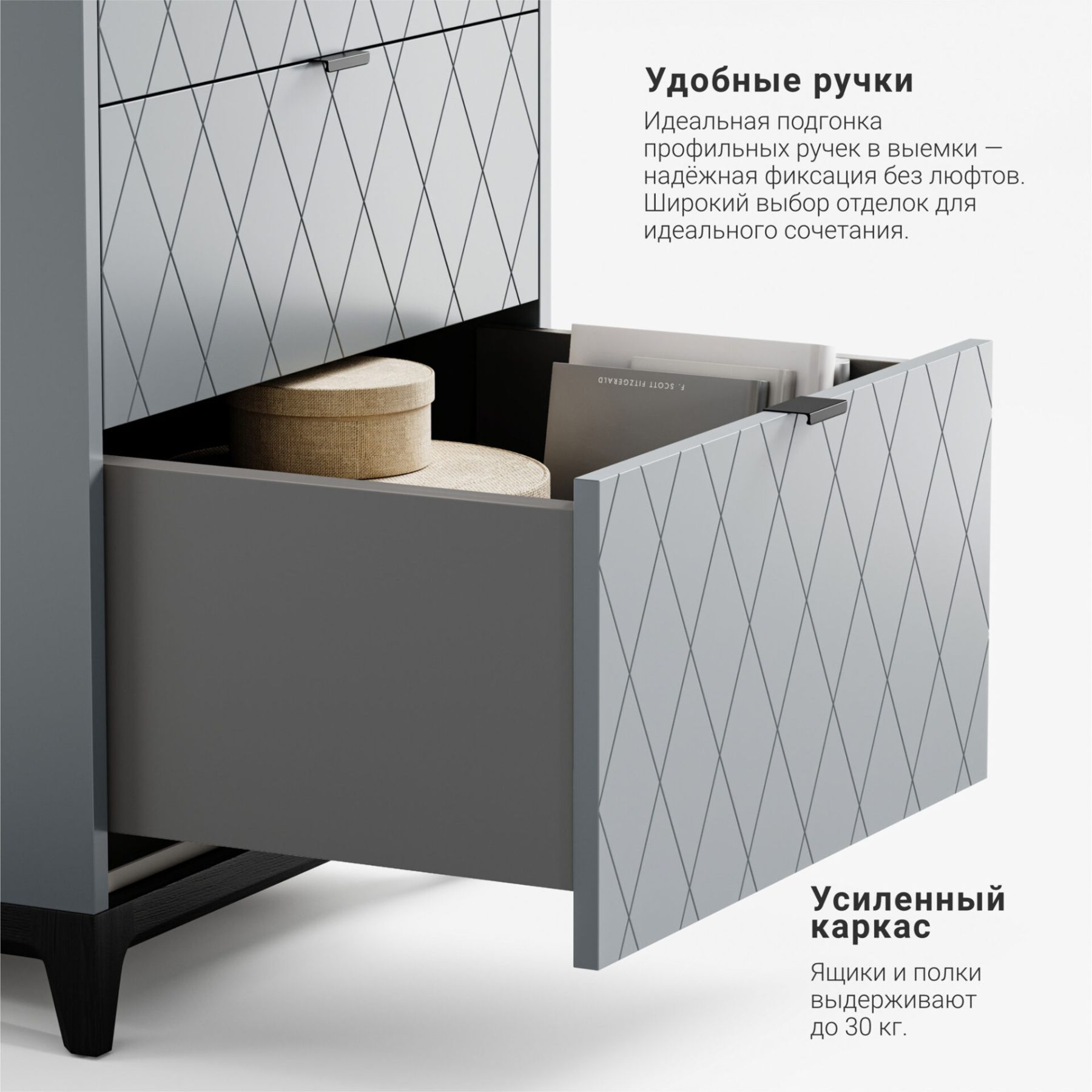 Усиленные каркасы ящиков из ЛДСП выдерживают вес до 25 кг;