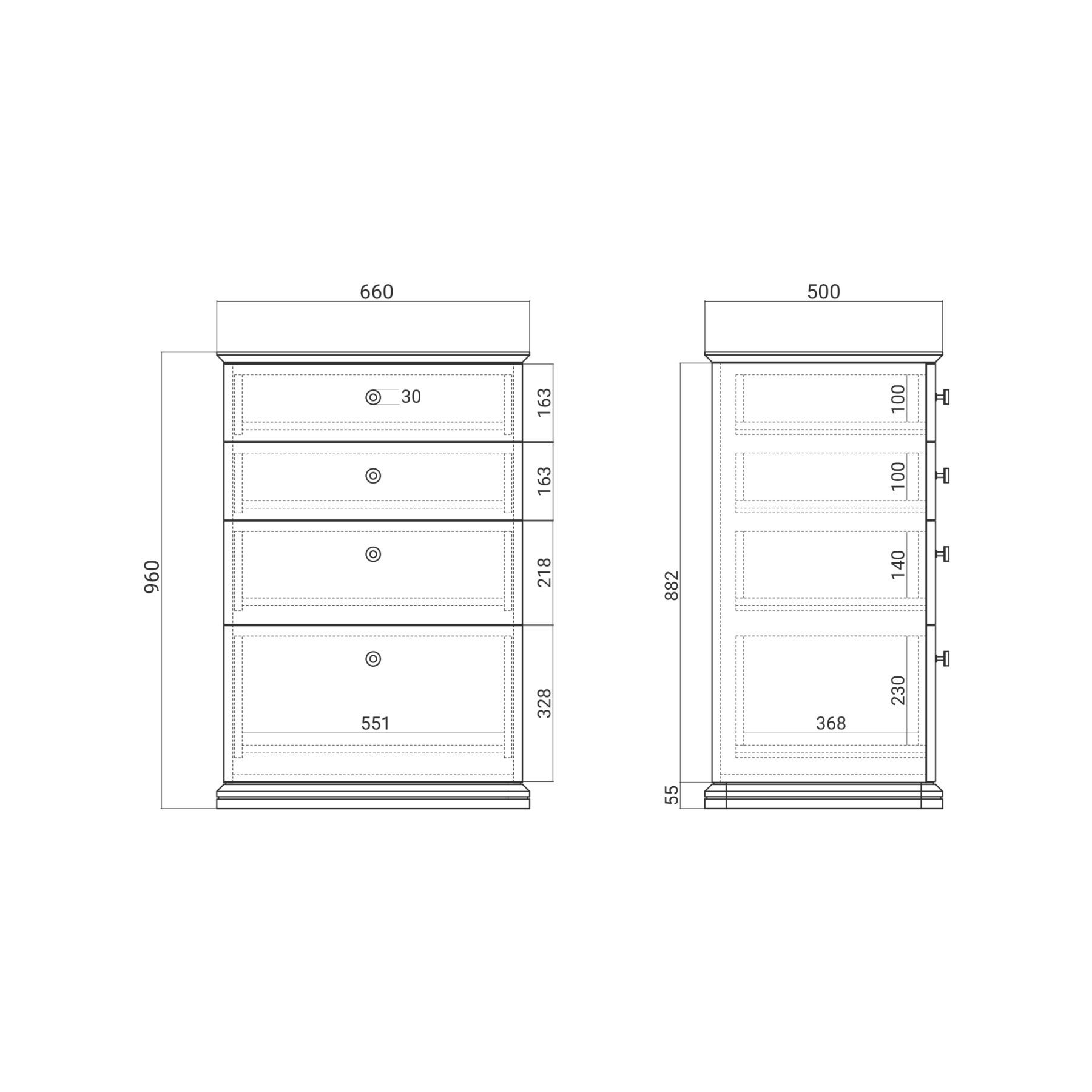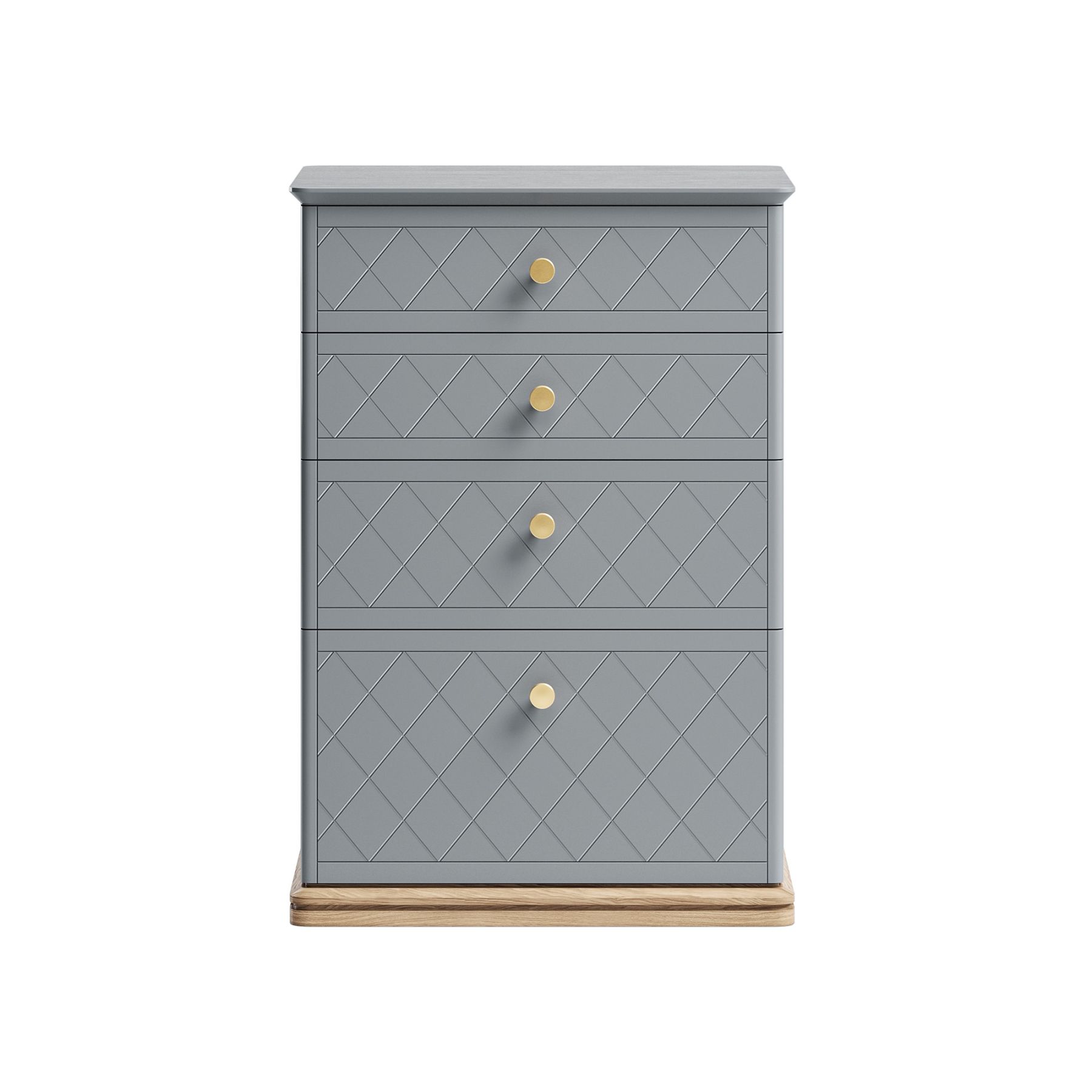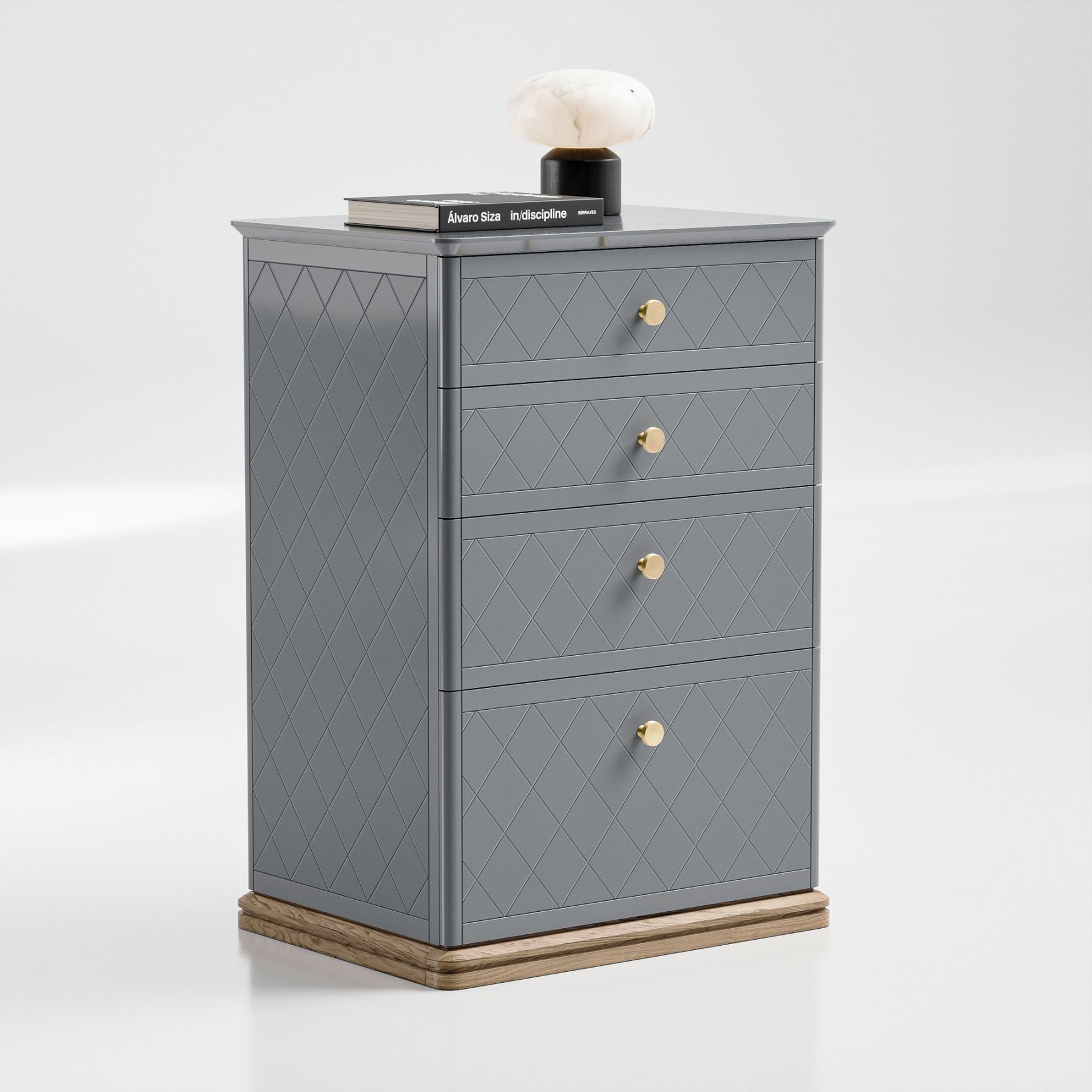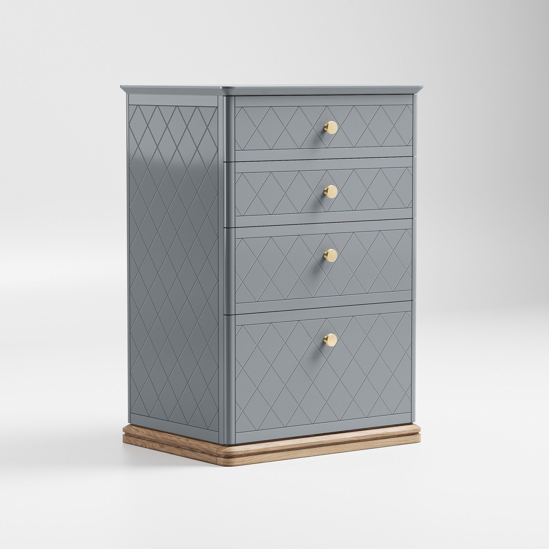 Этот комод обладает четырьмя просторными ящиками для хранения, направляющими с доводчиками, которые обеспечивают плавное и бесшумное закрывание, а также массивными ручками, которые создают приятные тактильные ощущения от материалов. Мы всегда ставим дизайн на службу комфорту, поэтому каждая деталь этого комода направлена на ваше удобство.