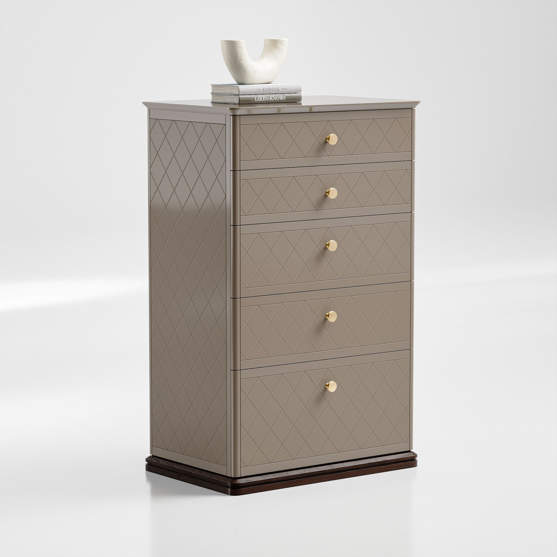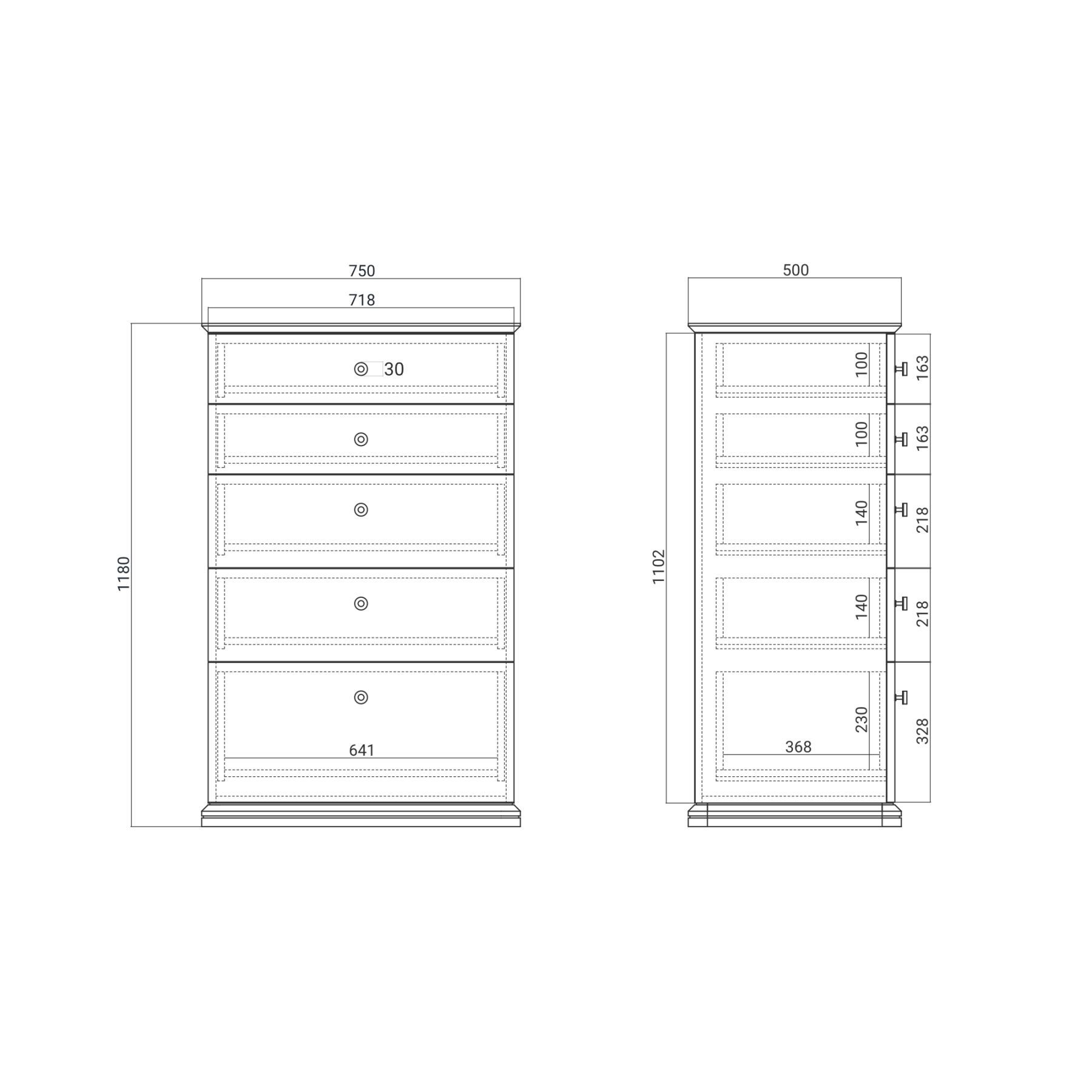 Пять просторных ящика для хранения, направляющие с доводчиками, обеспечивающее плавное и бесшумное закрывание, массивные ручки, приятные тактильные ощущения от материалов — из этих деталей складываются впечатления от пользования комодом. Мы никогда не ставим дизайн выше функциональности, именно поэтому каждая деталь служит одному — вашему комфорту.