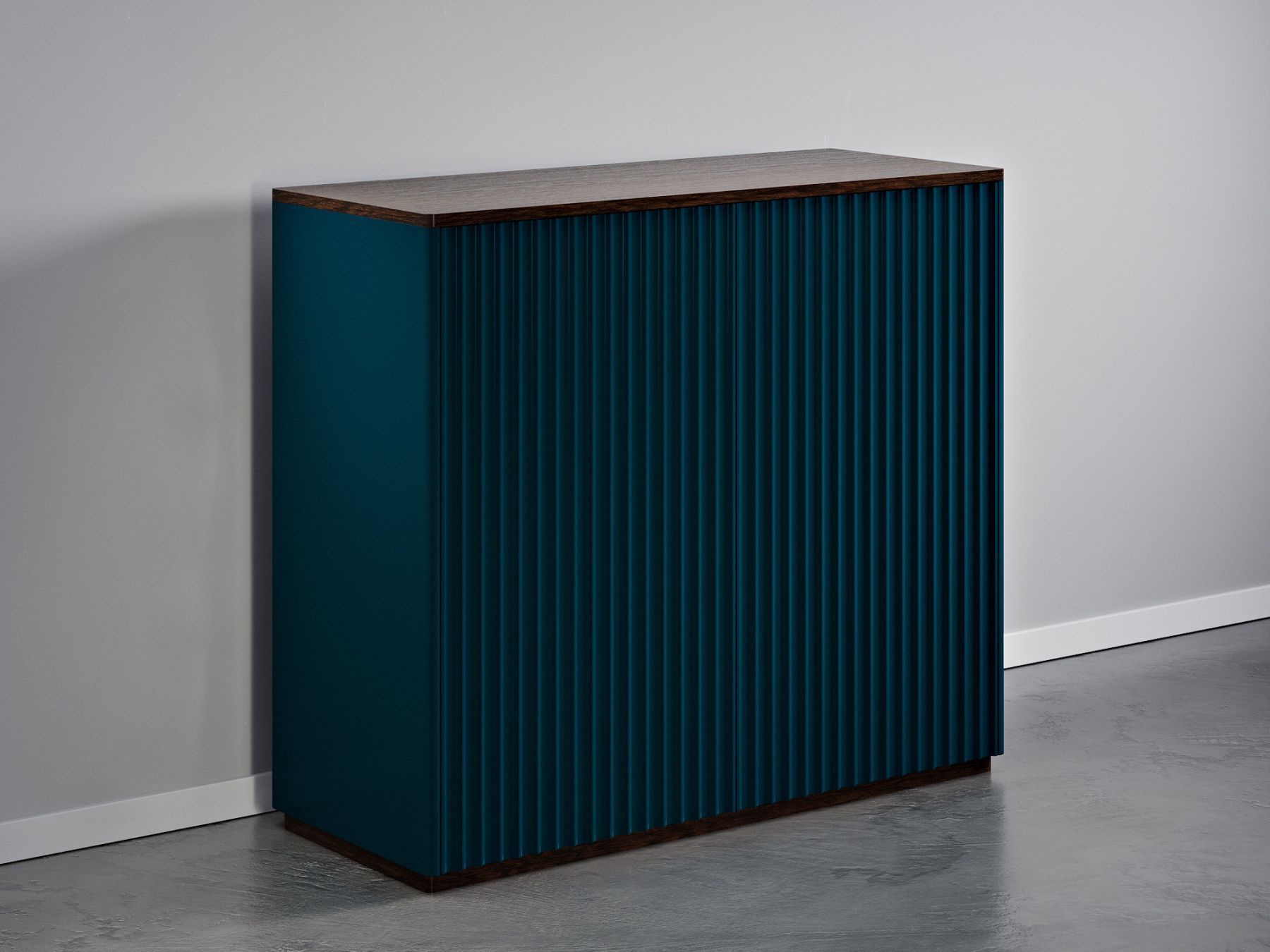 Высокий комод с двумя секциями с полками придется к месту в любом доме. Декоративная глубокая фрезеровка создает удивительную игру теней на фасадах. Строгие вертикальные линии и ощутимая фактура дерева добавляют изделию элегантность. Дверцы моментально реагируют на прикосновения — они открываются от нажатия, на фасадах нет ручек. Используйте его отдельно или вместе с другими изделиями из коллекции.
