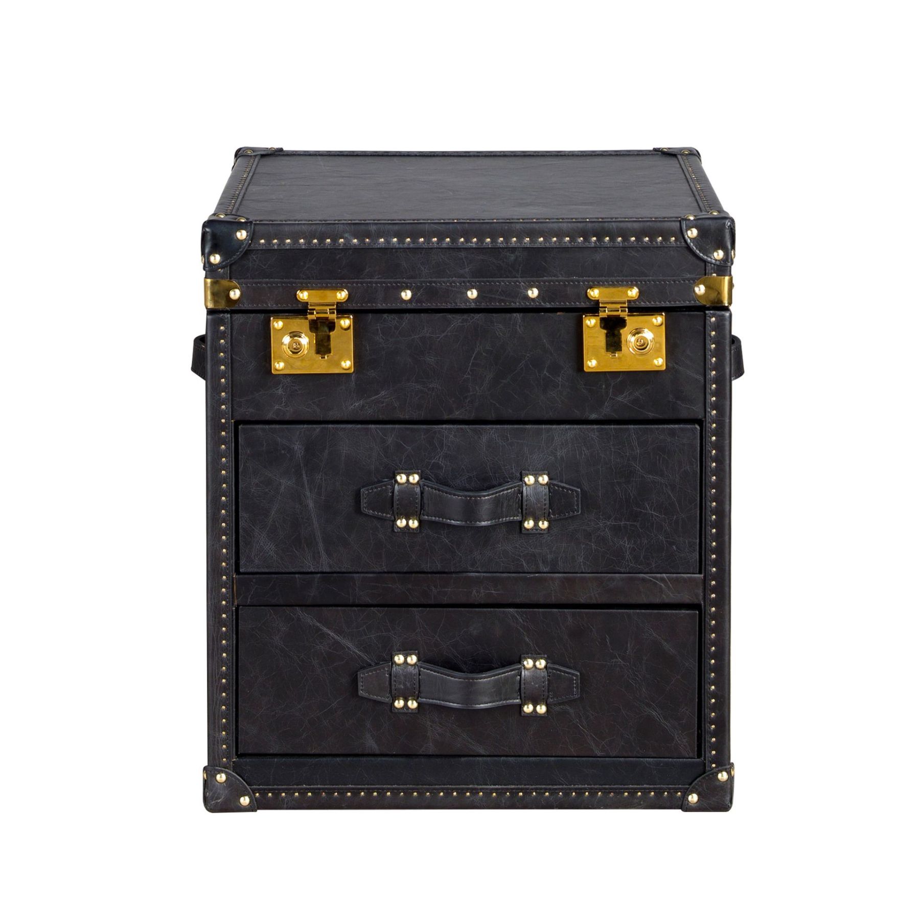 Современный дизайн чемодана с деревянной структурой МДФ , обитой черной воловьей кожей , с усиленными краями . Его золотистые крепления и заклепки придают нотку элегантности и индивидуальности, которую вы ищете в своем доме. Он имеет 1 верхний лоток и 2 передних ящика с открыванием с помощью язычка и плавным закрыванием .