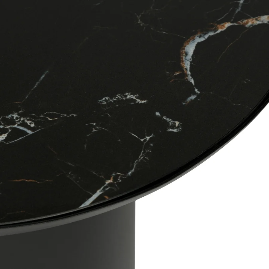 Черный оттенок придает столу глубину и современность, создавая атмосферу утонченности. Элементы с керамикой станут шик - акцентом и притяжением, а также они легкие в уходе и устойчивые к повреждениям, что делают это практичным выбором для повседневного использования.