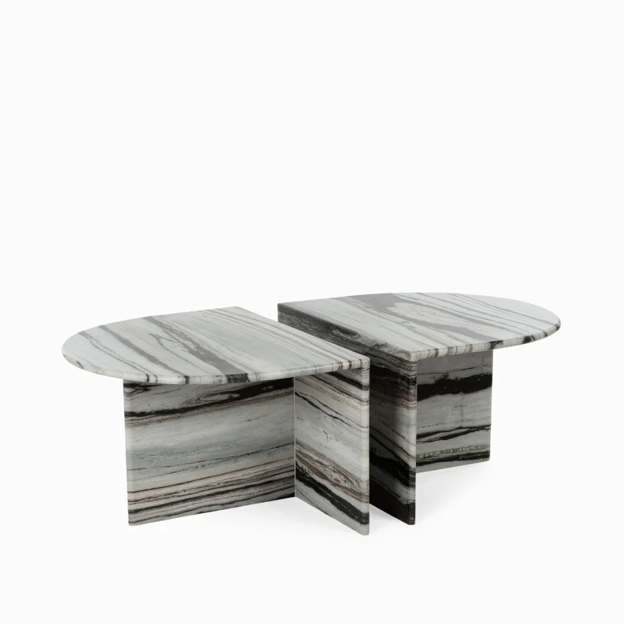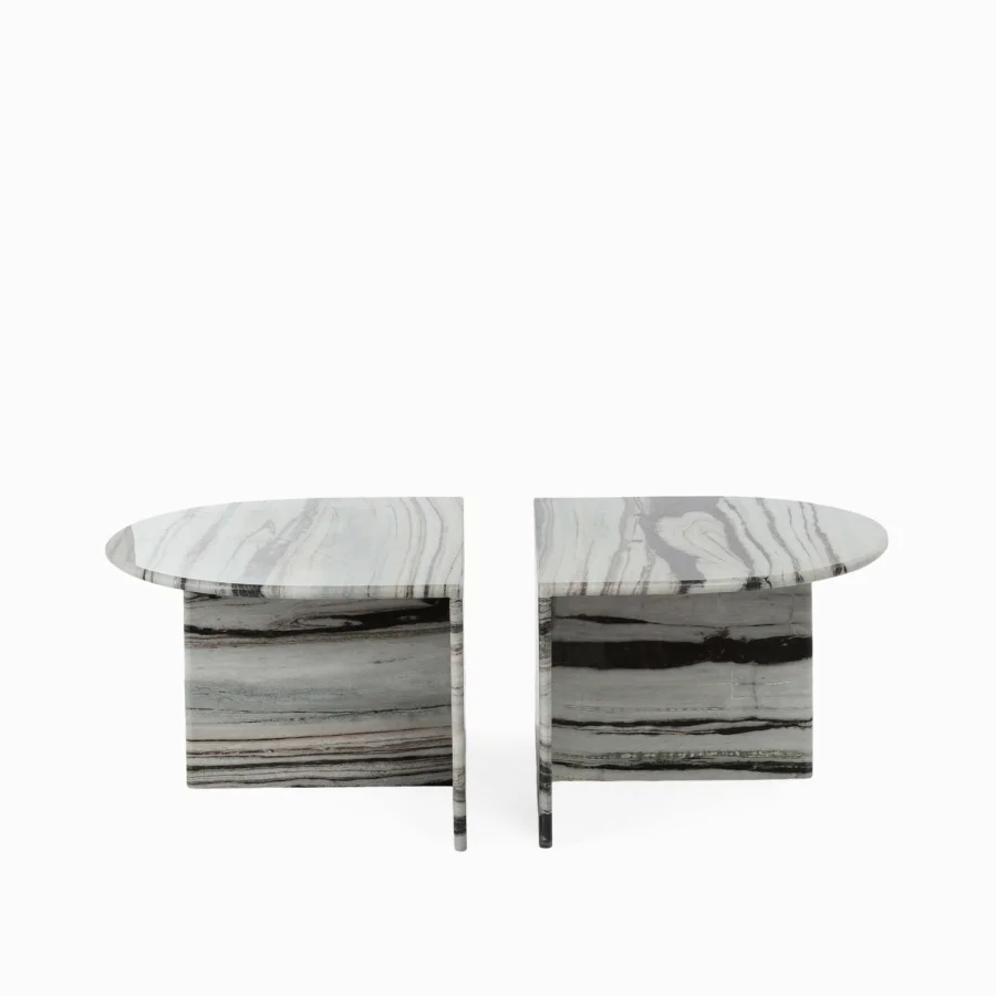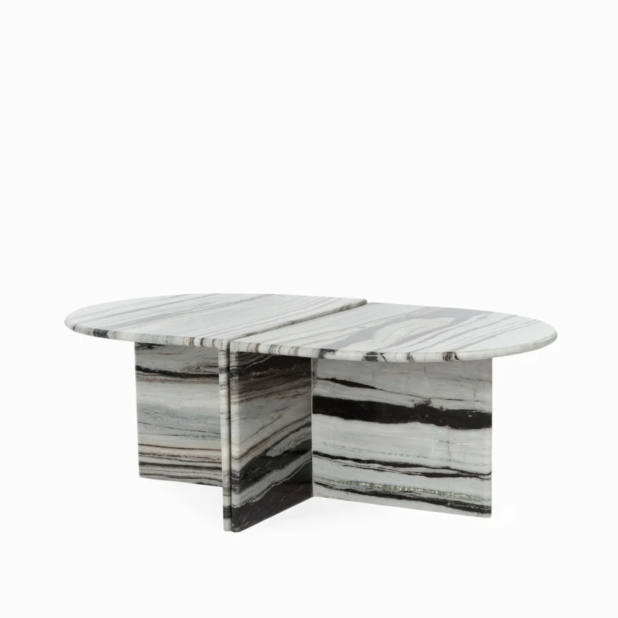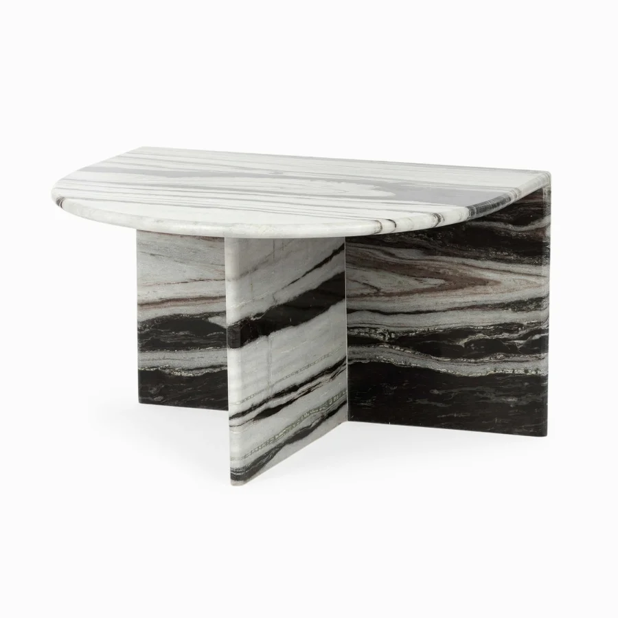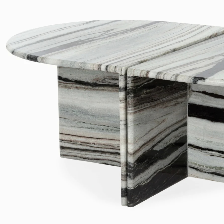 Изготовленный из мрамора, этот стол обладает не только прочностью, но и уникальной текстурой, которая придаёт ему роскошный вид.