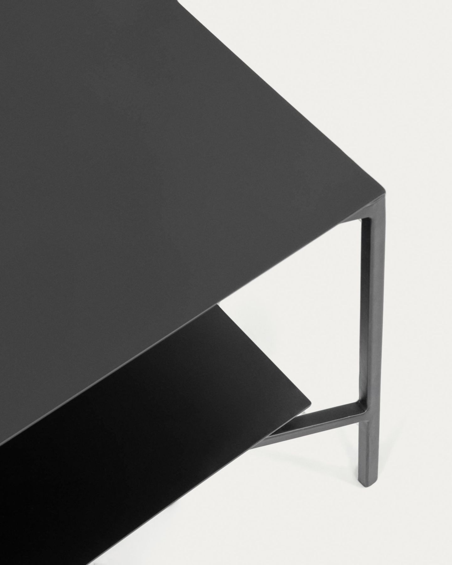 Кофейный столик Azisi 140 x 60 cm от фабрики La Forma – промышленный минимализм в лаконичной тонкой конструкции. Кофейный столик Azisi – это гармоничное сочетание прямых линий, эргономики и практичности. Здесь нет компромисса между дизайном и надежностью. А концепция изделия будет понятна каждому жителю мегаполиса – просто, удобно, универсально. Стол отлично подойдет под лофт или минимализм, он для современного интерьера, с акцентом на промышленный стиль. Стол прямоугольной формы, полностью сделан из металла. Сверху нанесено матовое черное покрытие. Столешница и полка имеют толщину 2 мм. Суммарно они способны выдерживать нагрузку до 30 кг (для одной полки допускается вес до 20 кг). Полка находится на высоте 13 см от пола. Удерживающая опора состоит из четырех квадратных трубчатых ножек с шириной грани 1,2 см и двух крестовых перекладин, удерживающих полку и столешницу. Снизу на каждой ножке есть пластиковый наконечник, защищающий напольное покрытие от деформации. Размеры: ширина – 140 см, глубина – 60 см, высота – 36 см. Вес – 27,1 кг. Для сборки в комплект входит инструкция и крепеж.