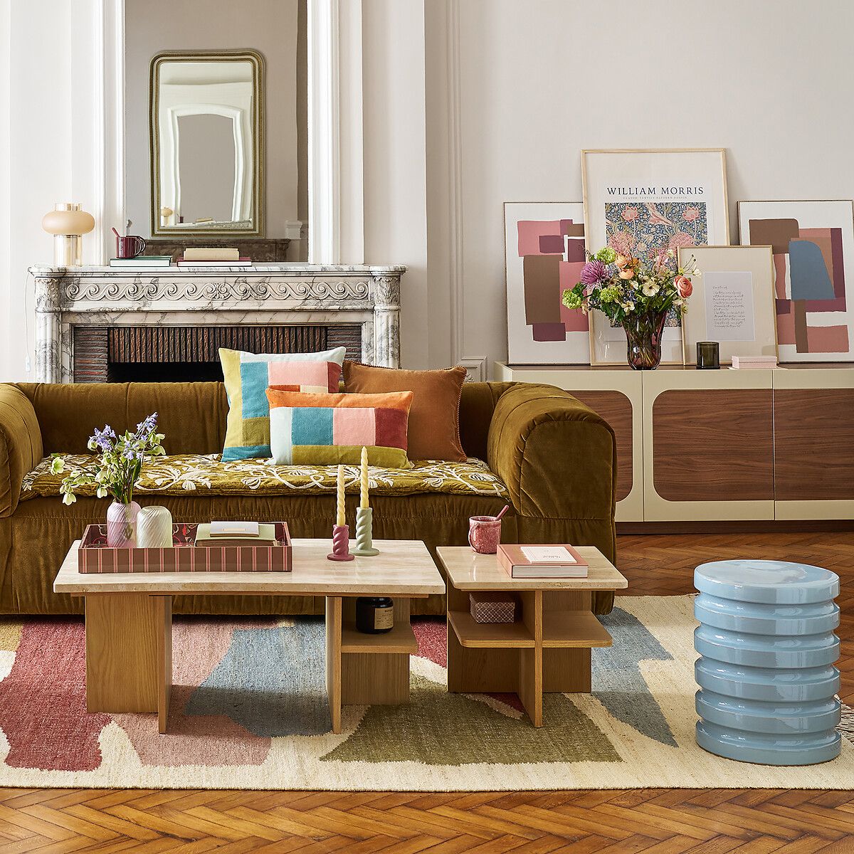 Графичная округлая форма. Дизайн родом из 70-х. Все это — Kerros, кофейный столик из керамики. Идеальное решение для добавления яркого штриха в интерьер гостиной. Творение La Redoute Intérieurs.