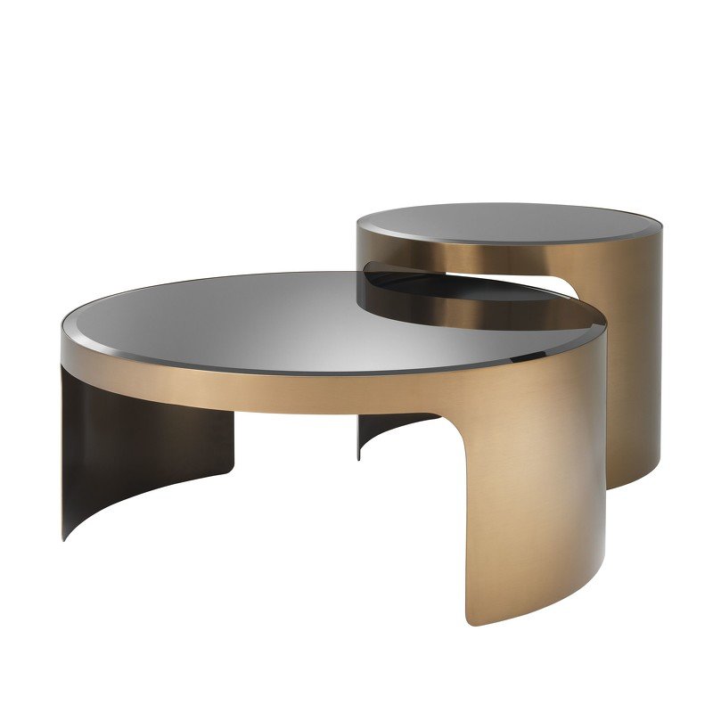 Комплект из двух кофейных столиков выполнен в колониальном стиле. Корпус столиков, из нержавеющей стали, прекрасно дополнен столешницей из ударопрочного закаленного стекла.