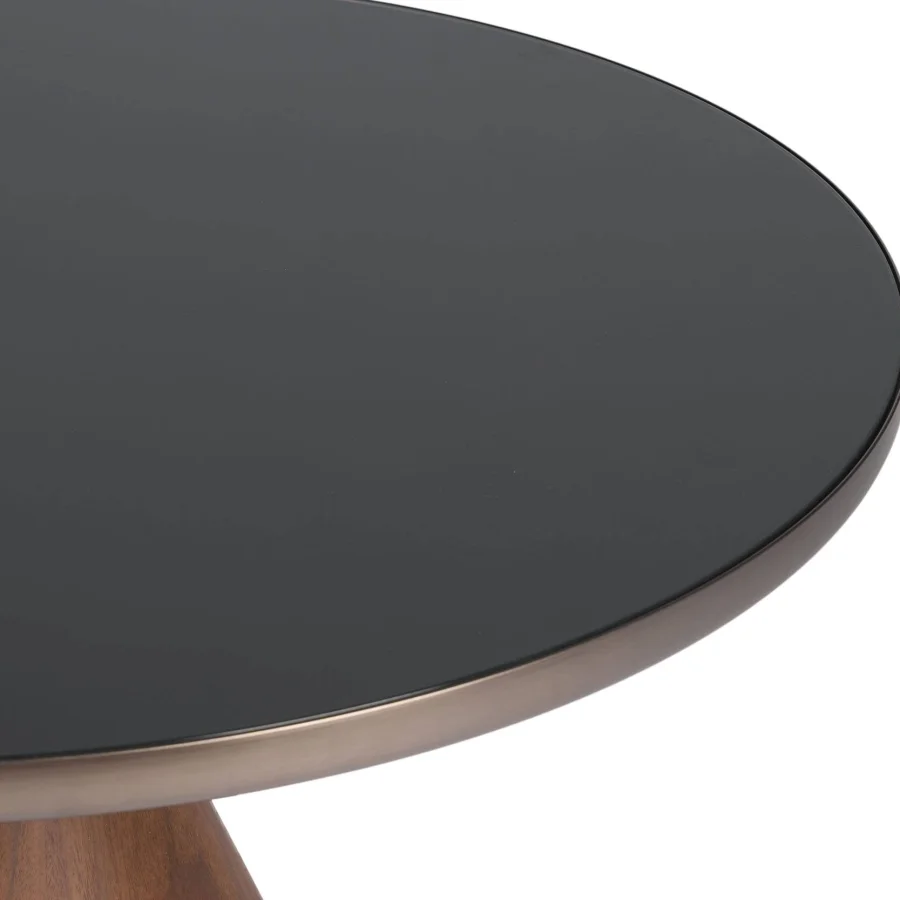 Поверхность кофейного стола выполнена из черного закаленного стекла, основание—из традиционного выдувного стекла ручной работы с имитацией 3D-зернистости дерева, что создает комбинацию красоты и уникальности без ущерба для изысканности.