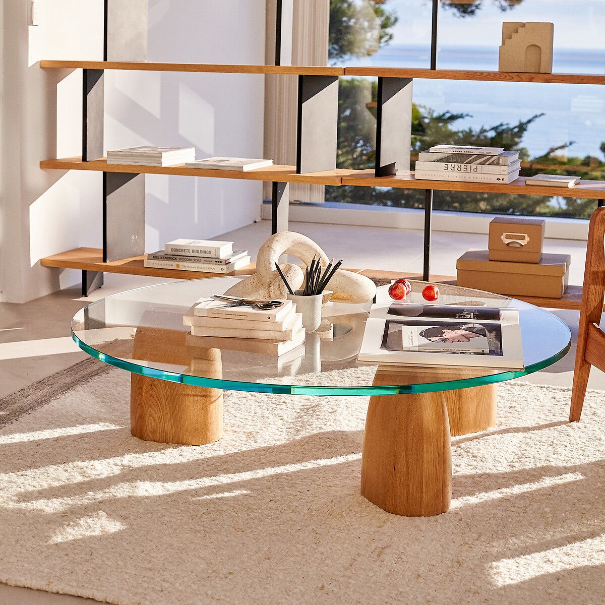 Журнальный столик Clay – это стильное и функциональное дополнение к вашему интерьеру. Он сочетает в себе элегантную простоту и природную красоту материалов. Столешница выполнена из толстого прозрачного закаленного стекла, которое обеспечивает отличный обзор на уникальные ножки в форме гальки. Ножки изготовлены из массива дуба, обработанного специальным полиуретановым покрытием для защиты от внешних воздействий.