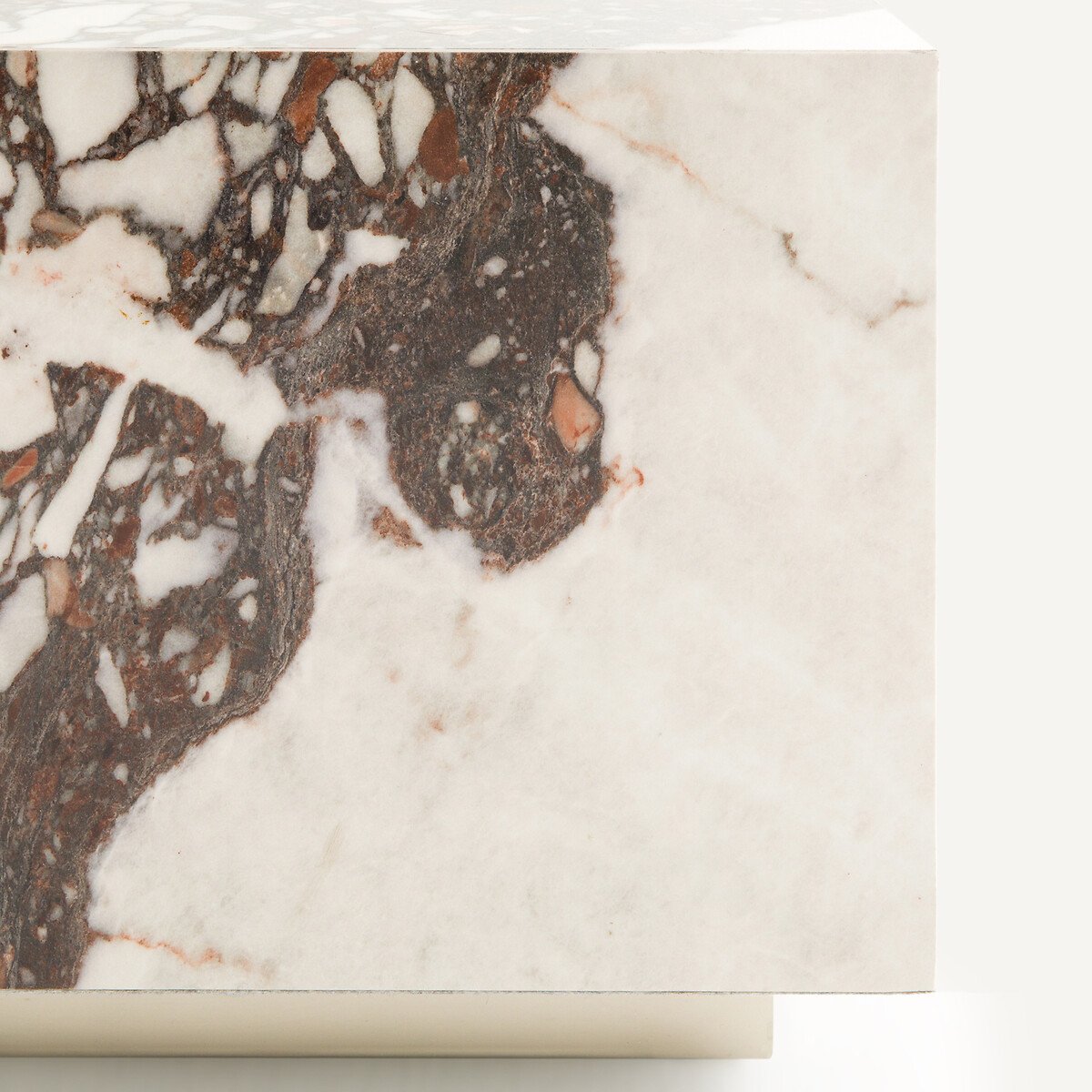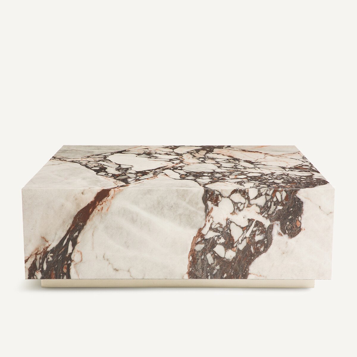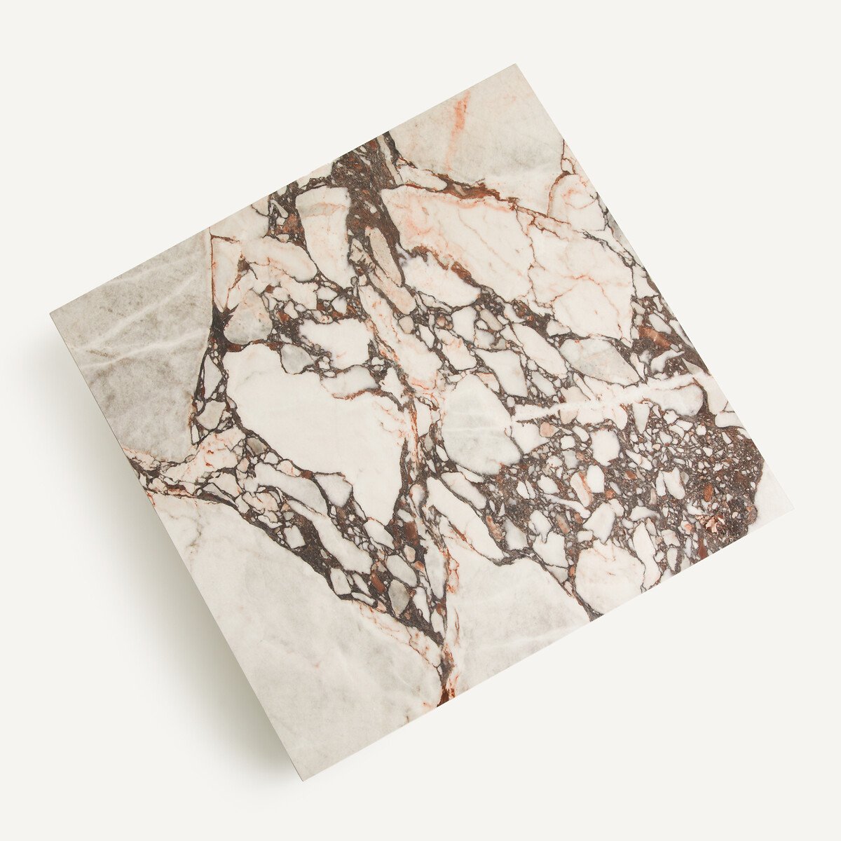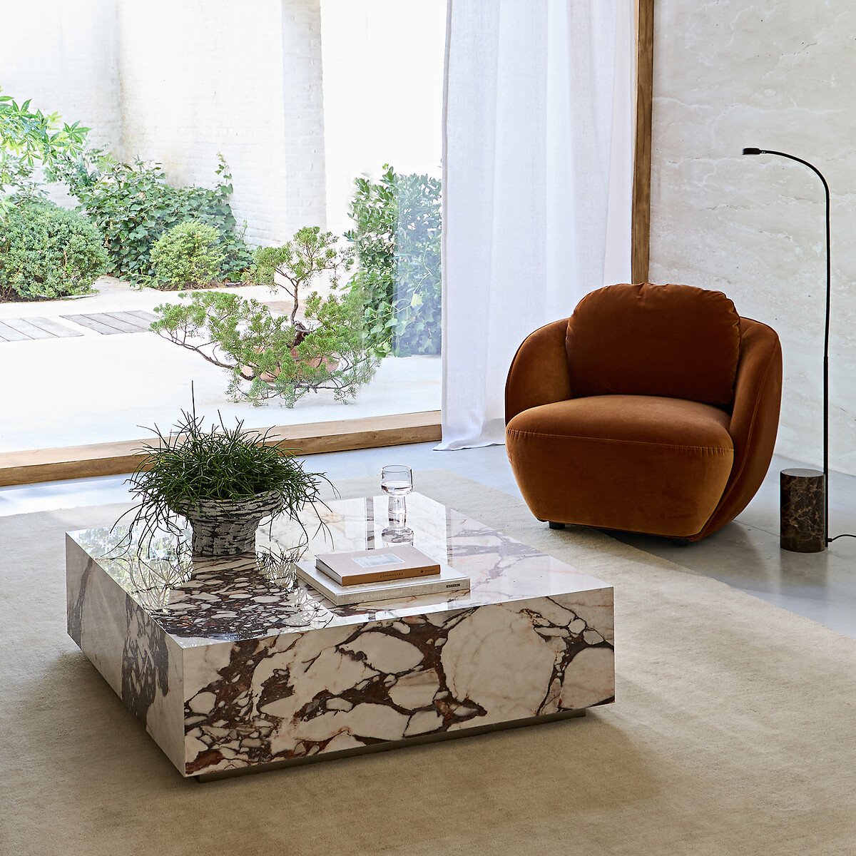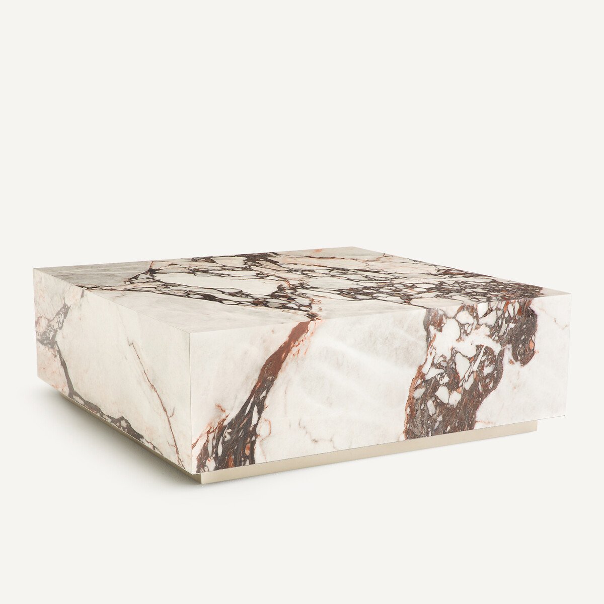 Прелесть керамики с глянцевым покрытием, кирпичного оттенка прожилка образует абстрактные узоры в случайных оттенках. Каждый журнальный стол Alcana — уникальное изделие.