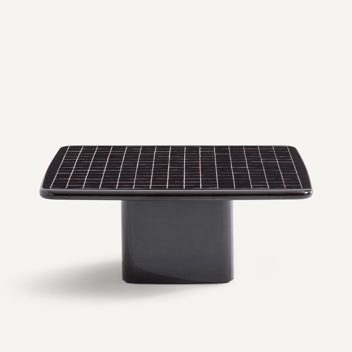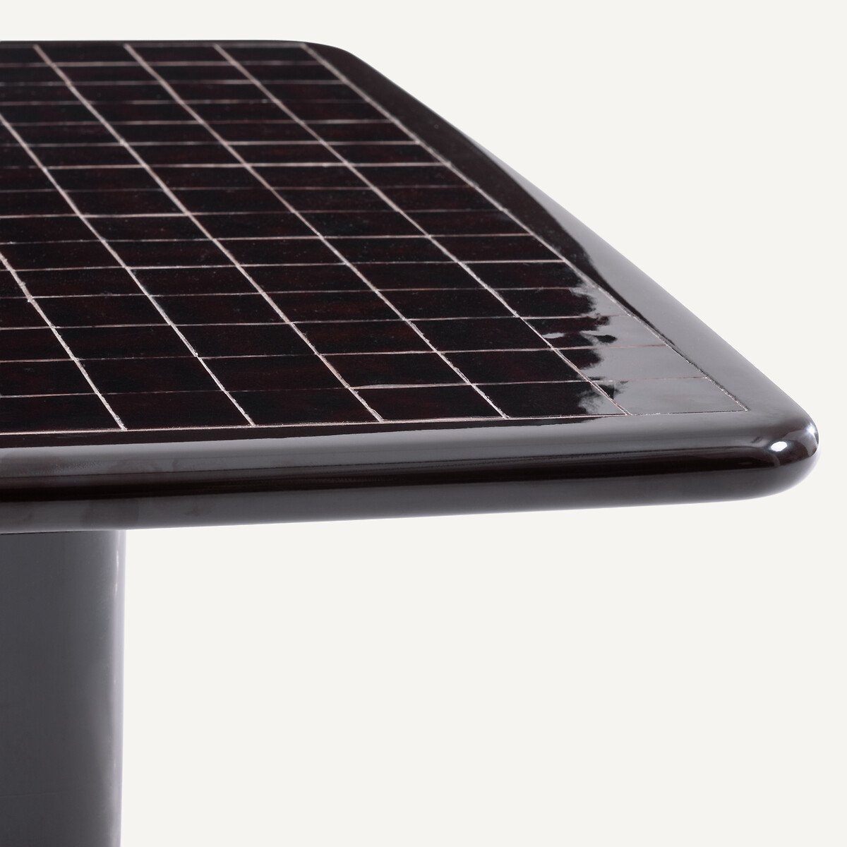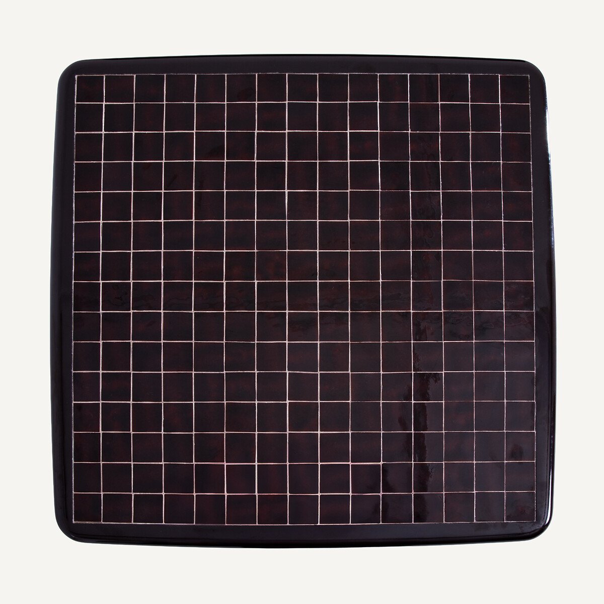 — Столешница инкрустирована блестящей керамической плиткой ручной работы; каждое изделие уникально.