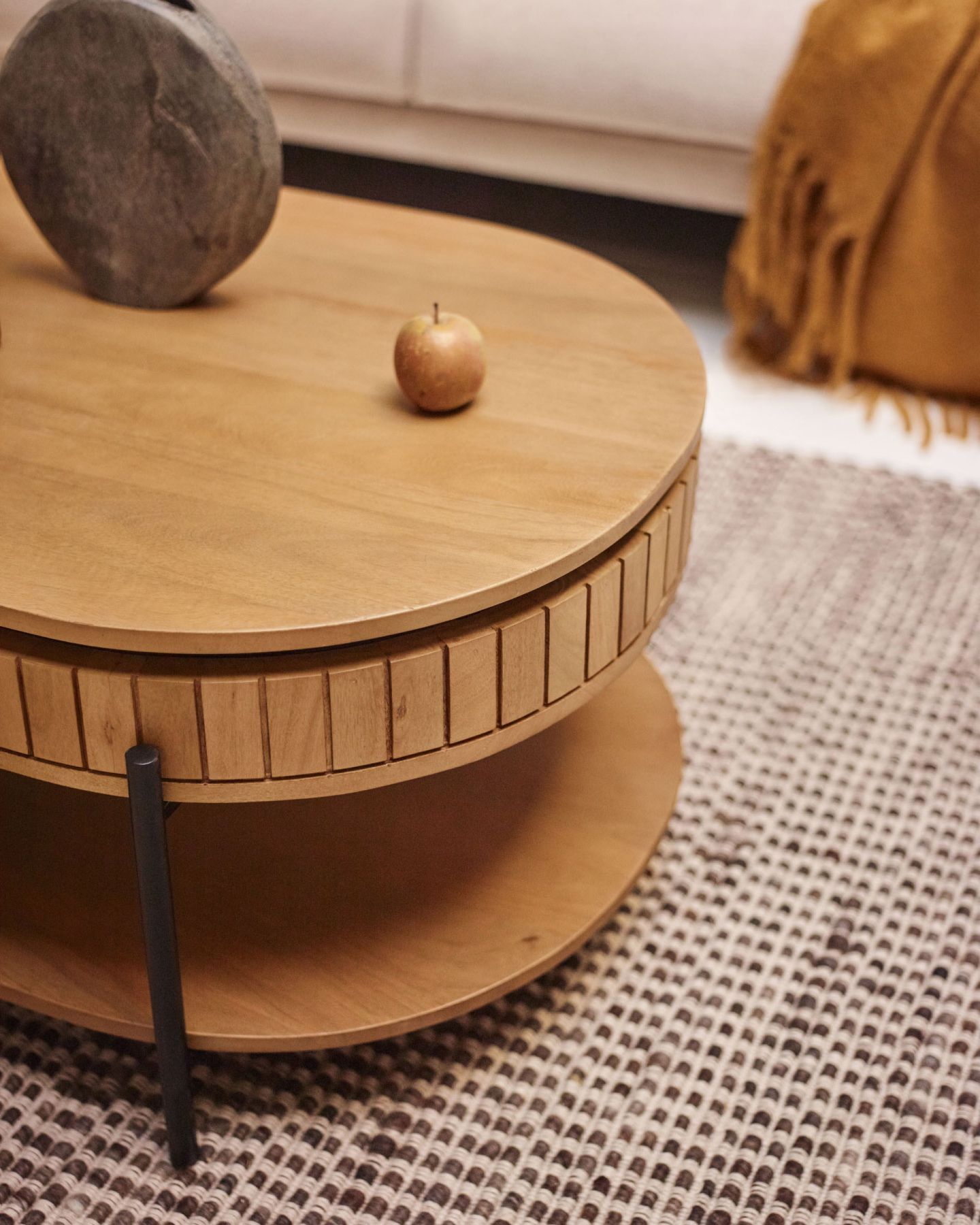 Licia — это дизайн команды Kave Home, сделанный вручную из кусочков устойчивого массивного дерева манго, индивидуально расположенных один за другим, чтобы создать его округлую форму. Стиль, который привносит плавность и движение в ваш интерьер.