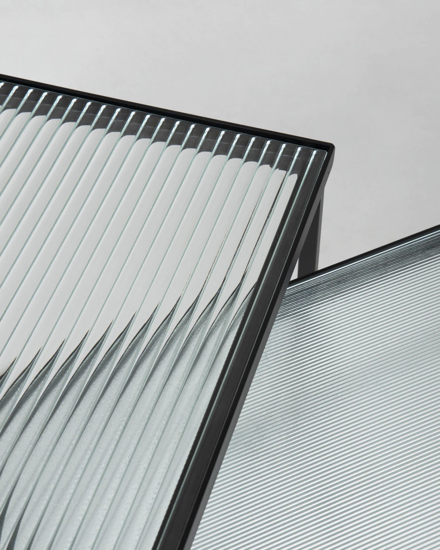 Набор из 2 столиков Akemi от фабрики La Forma – идеальная индустриальная атмосфера из текстурированного стекла. Столики Akemi – это непревзойденный дизайн в духе промышленного минимализма. Текстурированное стекло в гармонии с четкой геометрией убеждают в превосходстве форм и фактур в современном модерне. Большой плюс в том, что столики имеют разную высоту, поэтому малый можно ставить над большим. Этот оригинальный дизайнерский ход безусловно привнесет в ваш интерьер новую ноту. Столики имеют четкую геометрическую форму прямоугольника и квадрата. Столешница выполнена из текстурированного закаленного стекла толщиной 5 мм. Стекла помещены в рамочный каркас, имеющий сварную структуру. Он выполнен из металла и покрыт черной порошковой краской. Элементы каркаса имеют форму квадратных трубок с шириной грани 1,2 см. Максимальная нагрузка на каждый столик не должна превышать 15 кг. Размеры: ширина – 97 и 47 см, глубина – 47 и 52 см, высота – 35 и 43 см (второе значение дано для квадратной модели). Суммарный вес изделий – 15 кг. Сборка займет 20 минут. Крепеж входит в комплектацию.