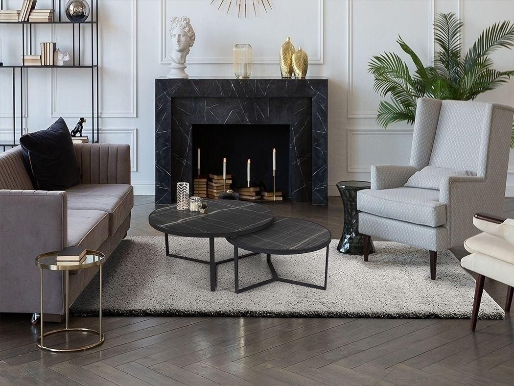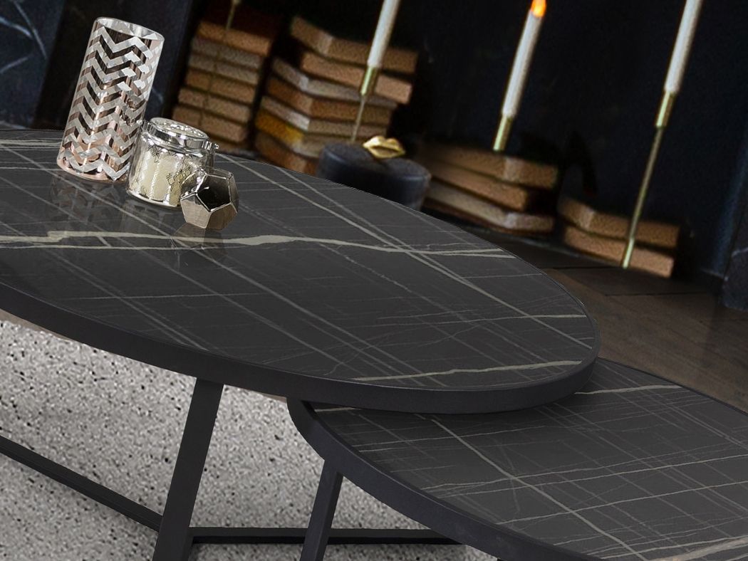 Размеры стола: Ø91x41 см и Ø71x36 см.
