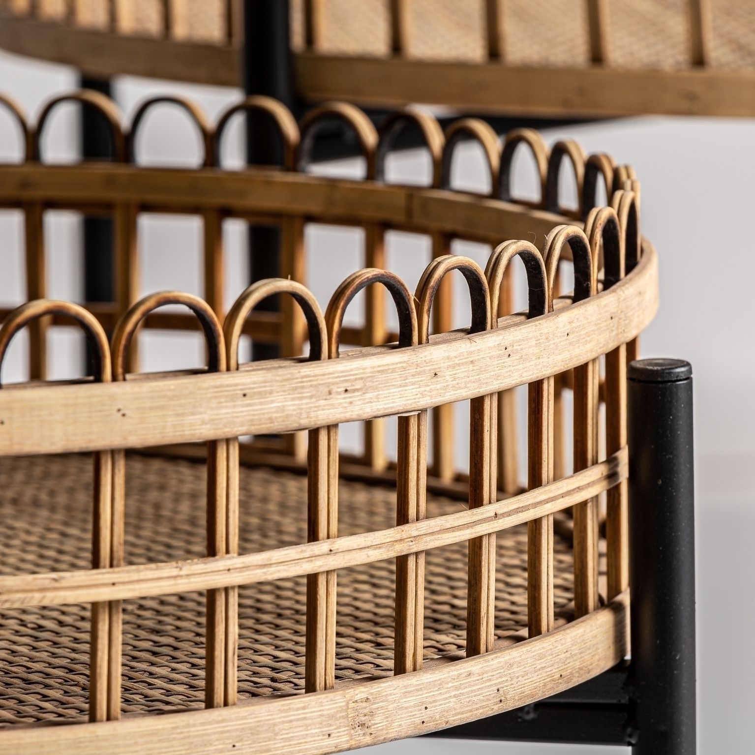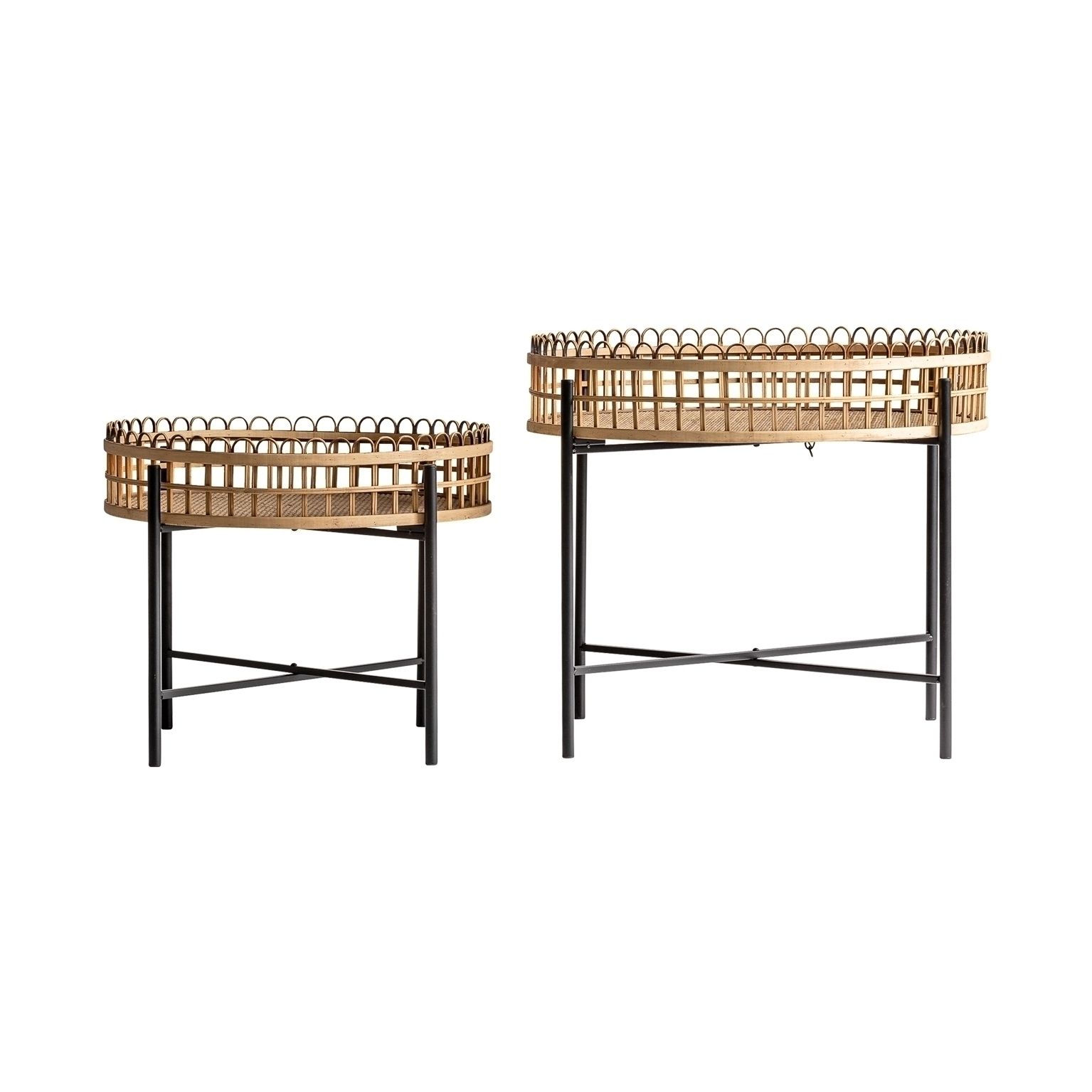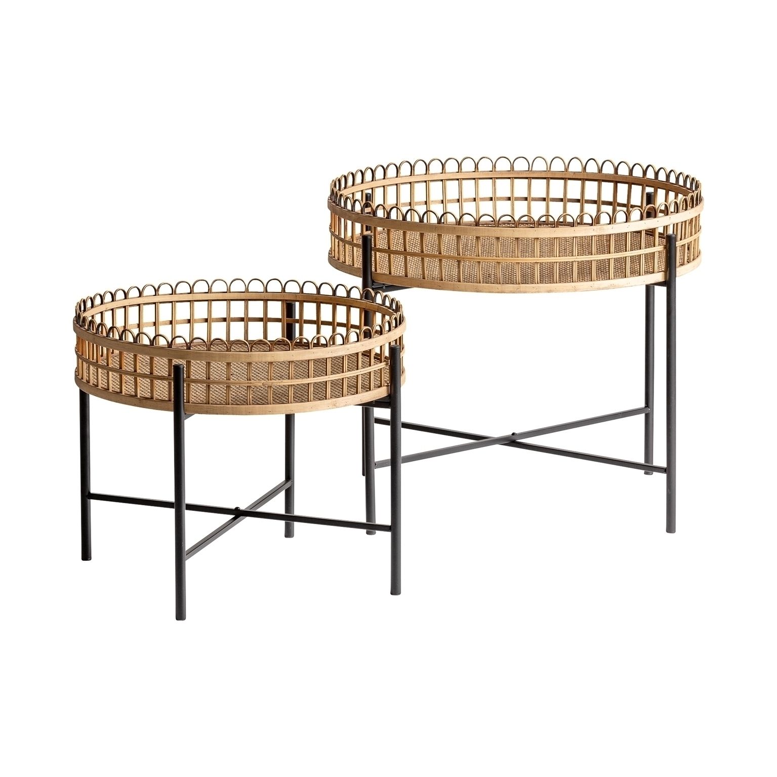 Набор столиков TRAVNIK, натуральный цвет, современный стиль. Изготовлен из ротанга в сочетании с железом и бамбуком. Съемное складное изделие.