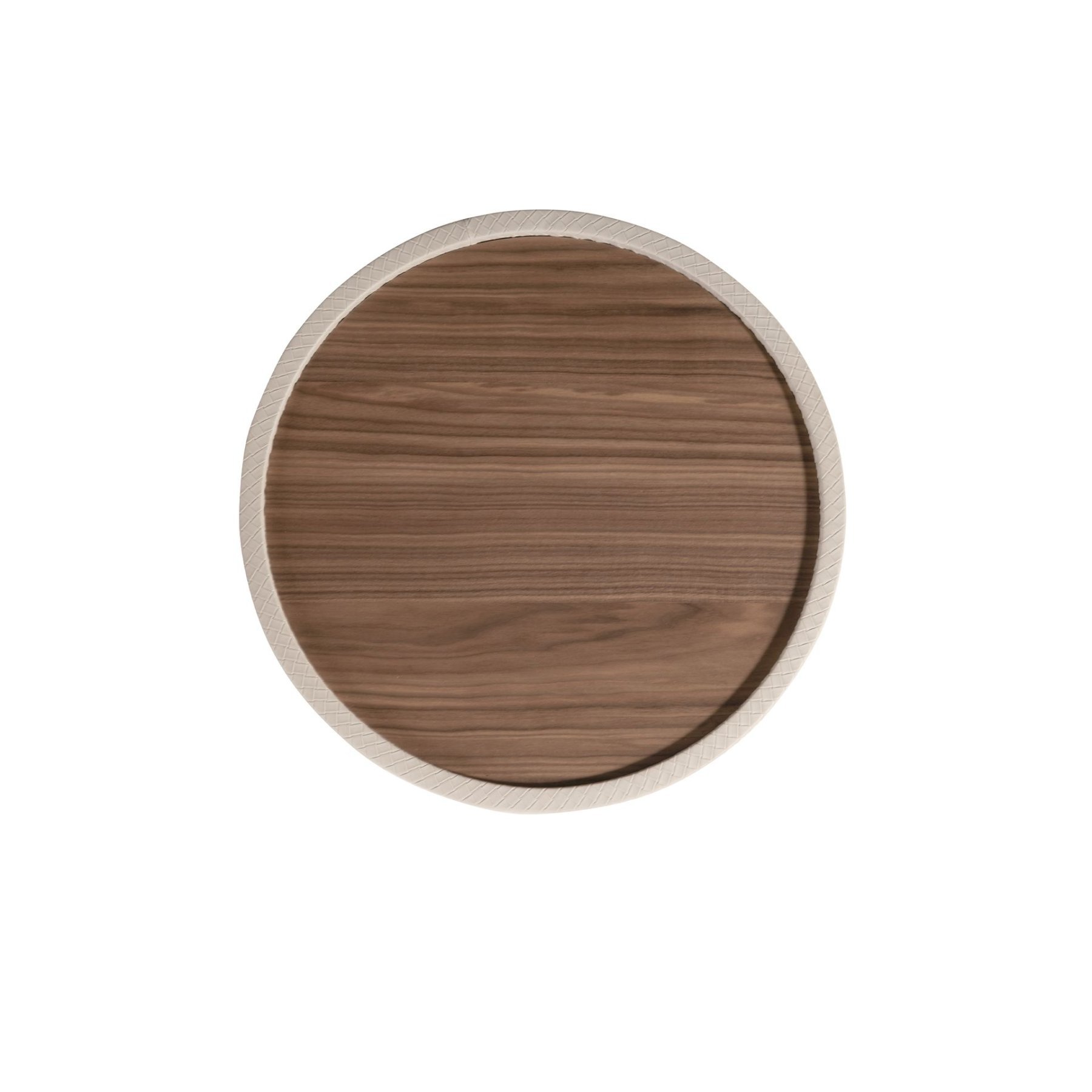 Современный круглый приставной столик со столешницей из натурального орехового шпона и оригинальными деревянными ножками, обитыми искусственной кожей песочного цвета. Простой, но оригинальный дизайн, который добавит вашему интерьеру неповторимый и индивидуальный шарм.