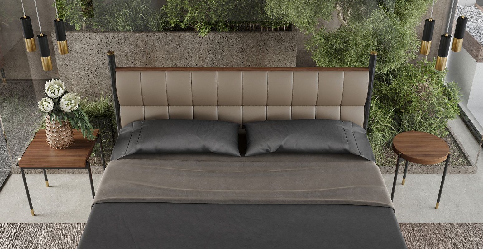изготовлен из высококачественного шпонированного МДФ высокой плотности. Металлические ножки с латунными колпачками подчеркивают изысканность модели.