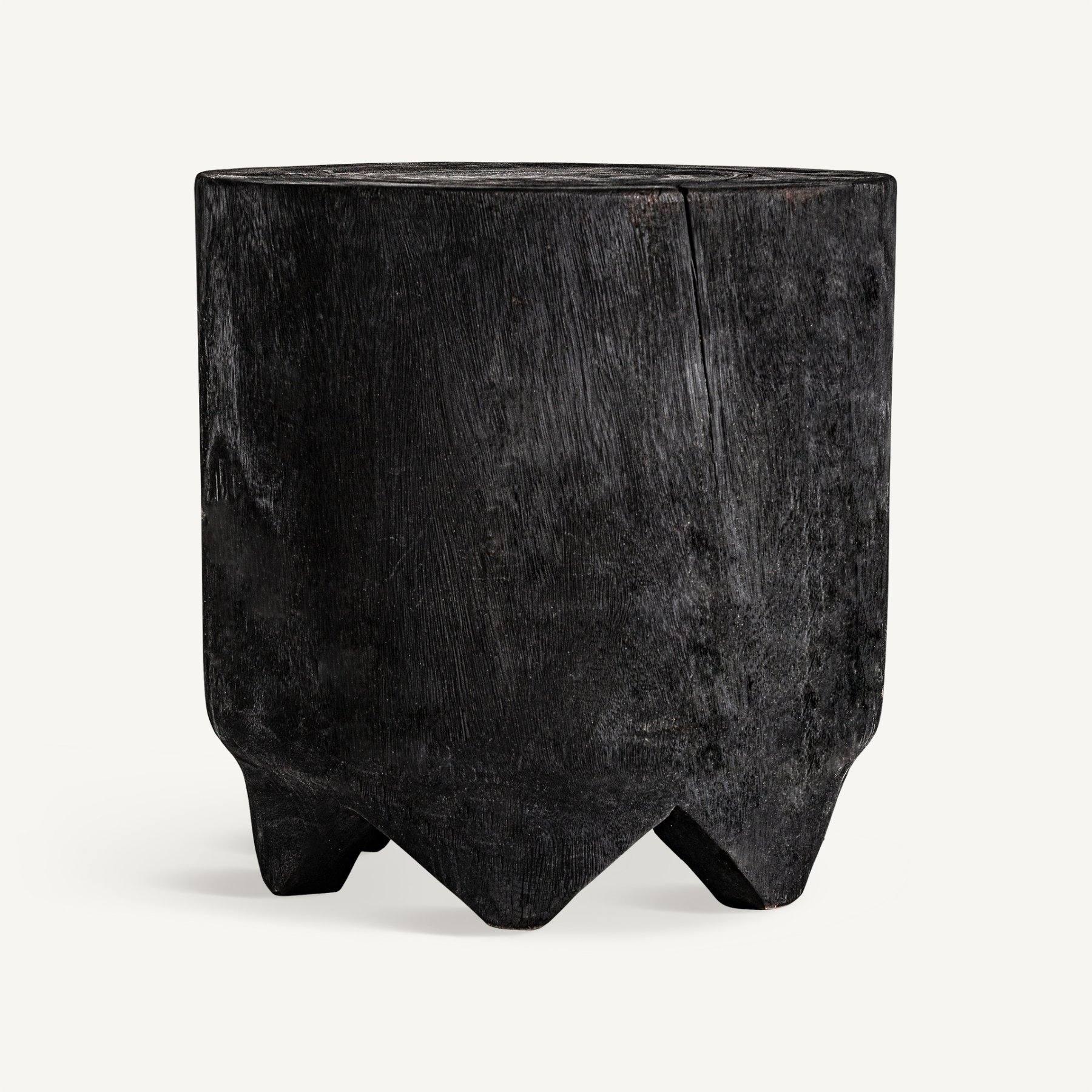 Приставной столик KEPOI, черный потертый цвет, этнический стиль. Изготовлен из обожженного дерева суар.