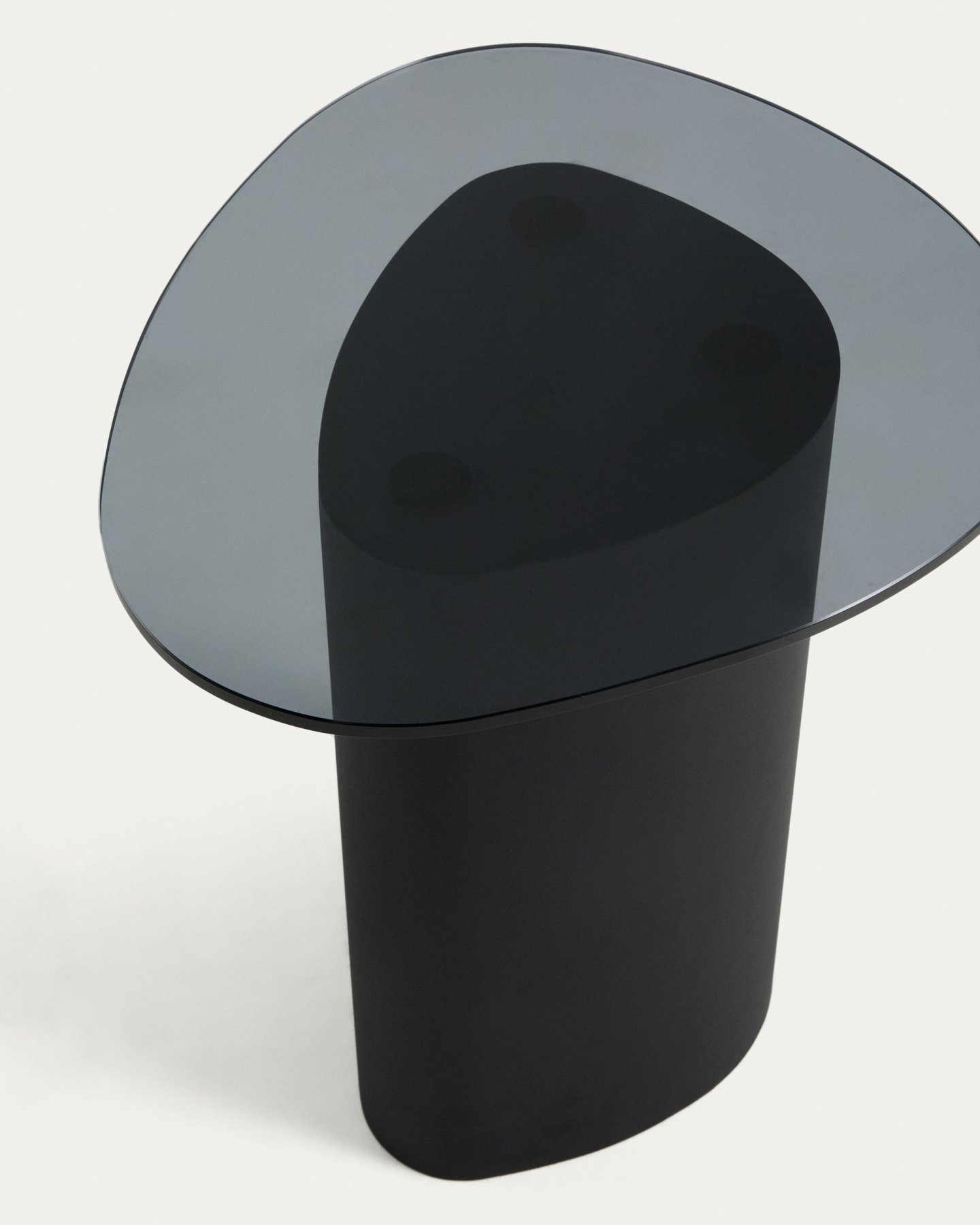 Стол Olir сочетает в себе стальное основание с глянцевой отделкой и столешницу из тонированного закаленного стекла, создавая изделие с органичными линиями. Скульптурная форма основания придает изделию характер и устойчивость, а стекло смягчает общий вид и пропускает свет, создавая ощущение легкости. Стальное основание покрыто порошковой краской, которая защищает поверхность от ударов, царапин и износа. Столешница из тонированного закаленного стекла обеспечивает равномерное распределение цвета и однородную отделку.