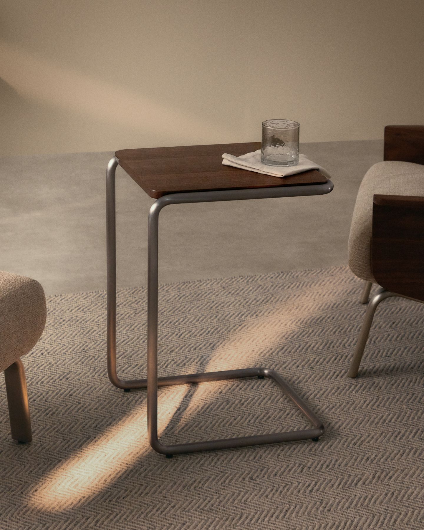 Tarsel переосмысливает элегантность середины века в современном ключе, идеально сочетая функциональность и визуальную изысканность. Столешница из орехового шпона толщиной 0,6 мм с темной отделкой контрастирует с трубчатой конструкцией из нержавеющей стали с эффектом шлифовки, что делает его современным и изысканным воплощением современности. Используемая древесина сертифицирована по системе FSC™ на 100% и соответствует модели ответственного лесоуправления, гарантирует происхождение и прослеживаемость каждой детали.