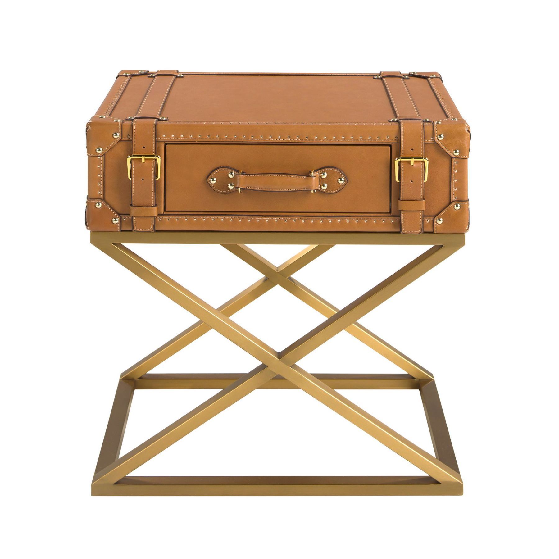 Прямоугольный угловой стол современного дизайна из коровьей кожи. Ножки из нержавеющей стали золотистого цвета придадут вашему дому современный и авангардный вид, который вы ищете. В нем предусмотрено большое пространство для хранения вещей с 1 ящиком с системой открывания с помощью ручки-язычка и доводчиком с функцией плавного закрывания.
