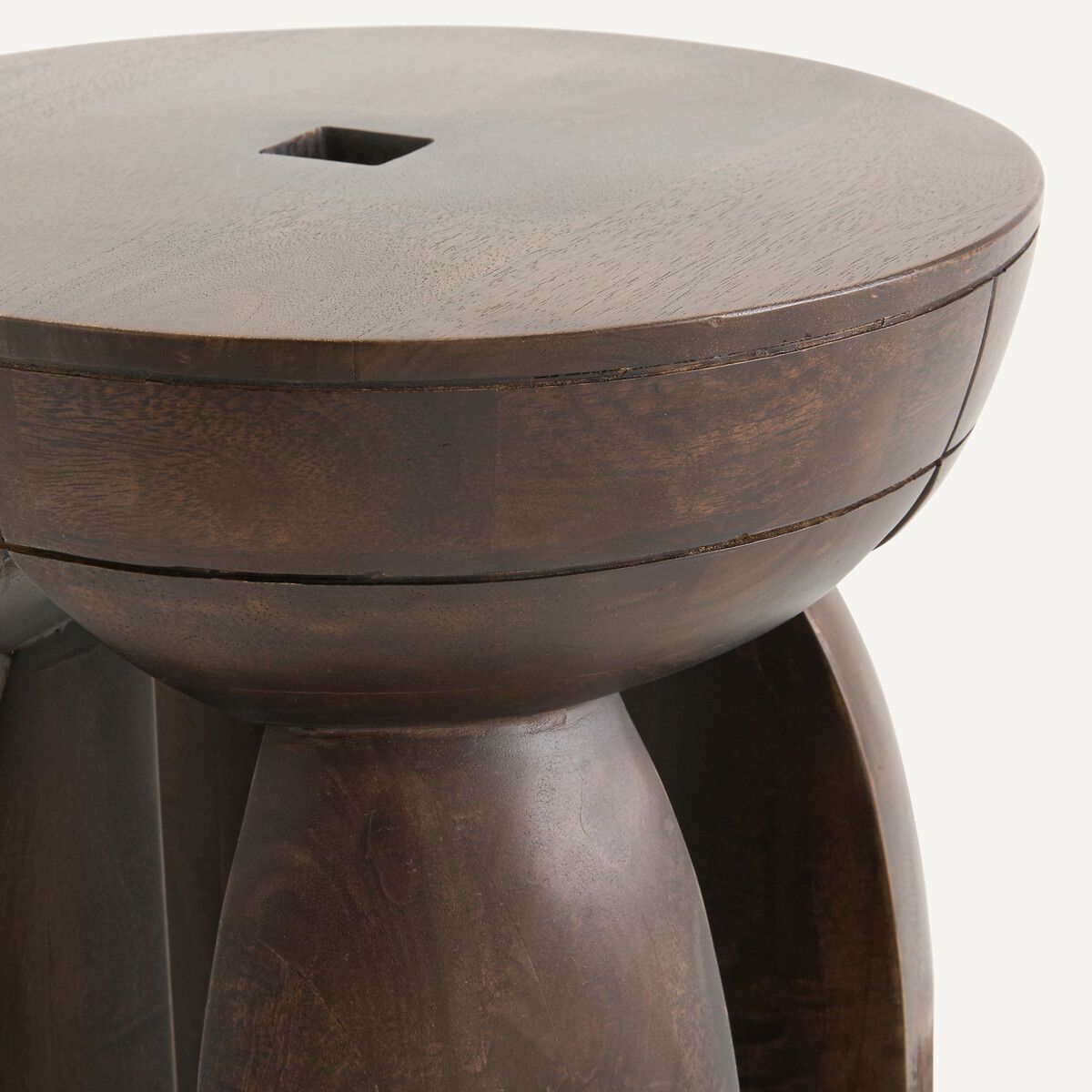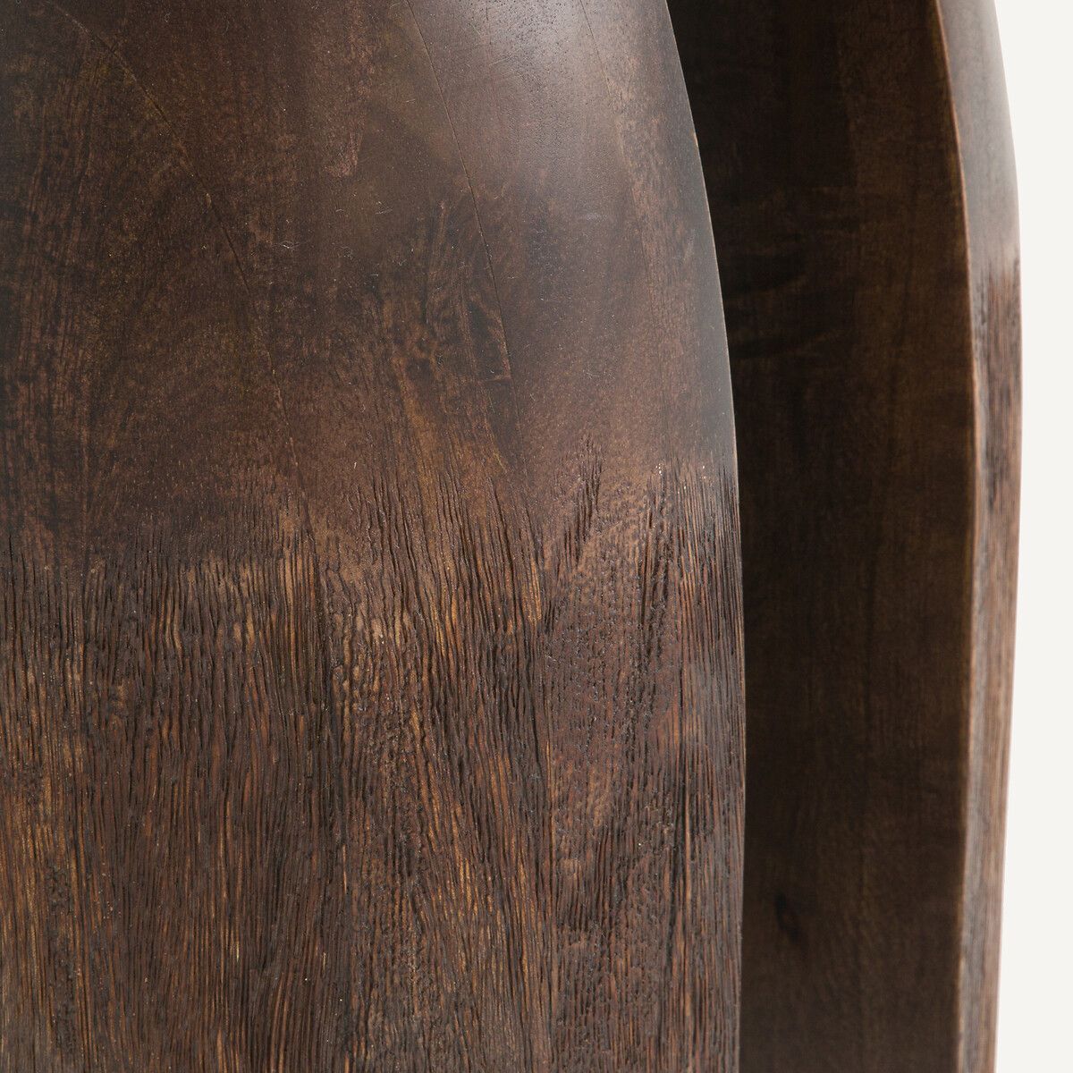 — Из массива дерева манго, окрашенного нитроцеллюлозным лаком
