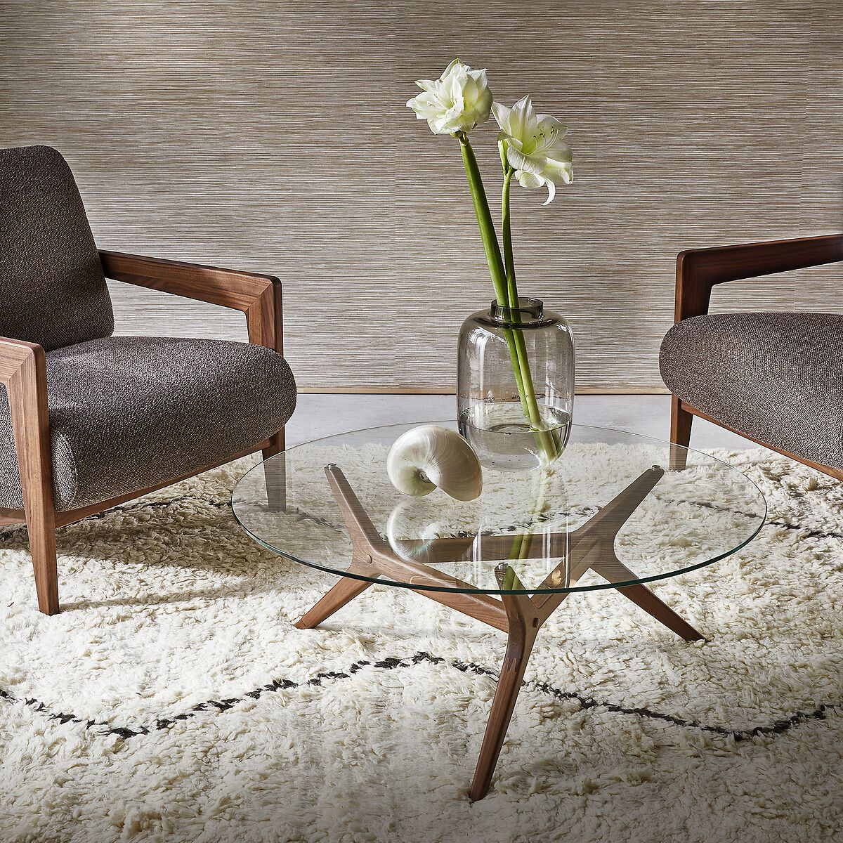 Элегантный и изысканный журнальный стол со стеклянной столешницей и ножками из массива дерева с геометрическим дизайном. Можно использовать отдельно или в сочетании с журнальным столом Maricielo, продающимся на нашем сайте.