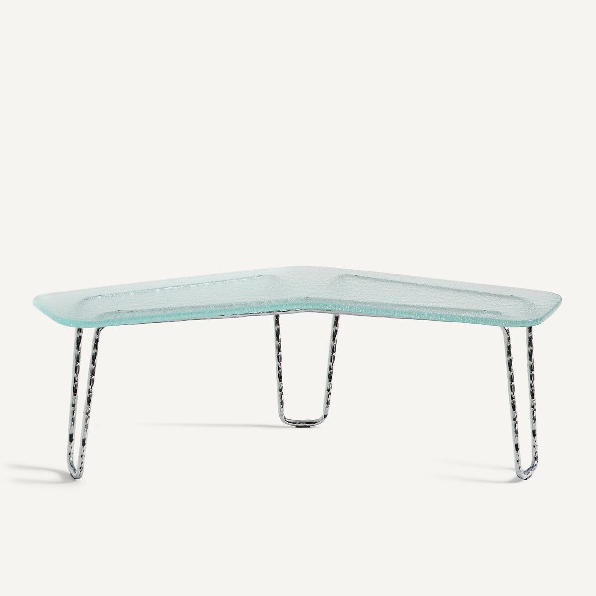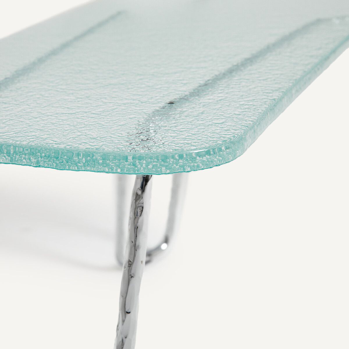 — Столешница из закаленного стекла с закругленными краями, толщина 1,5 см: гладкий верх, зернистый низ.