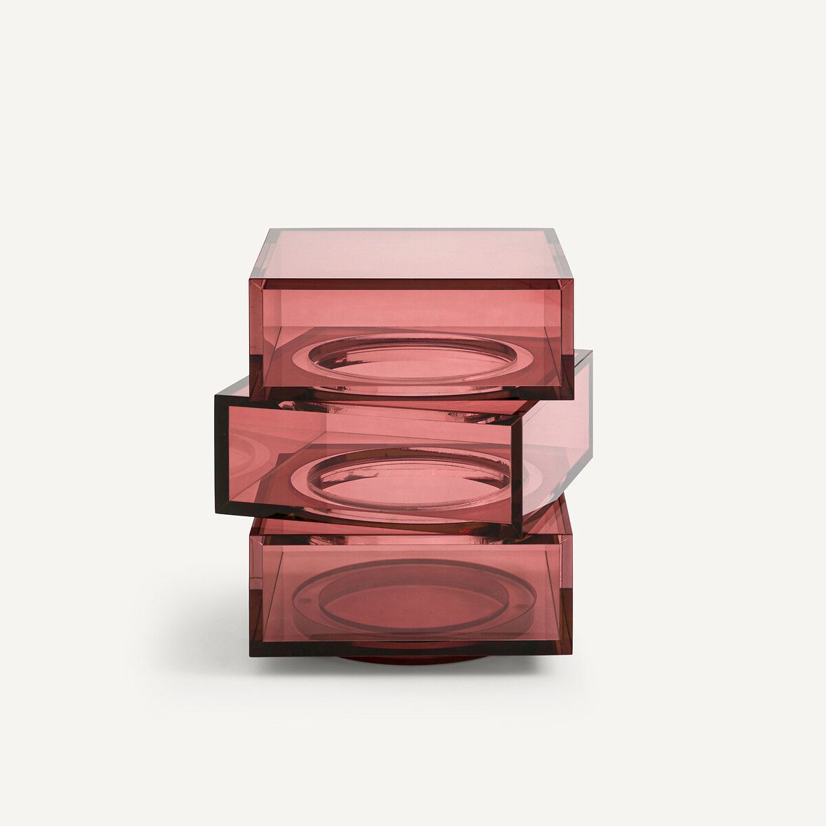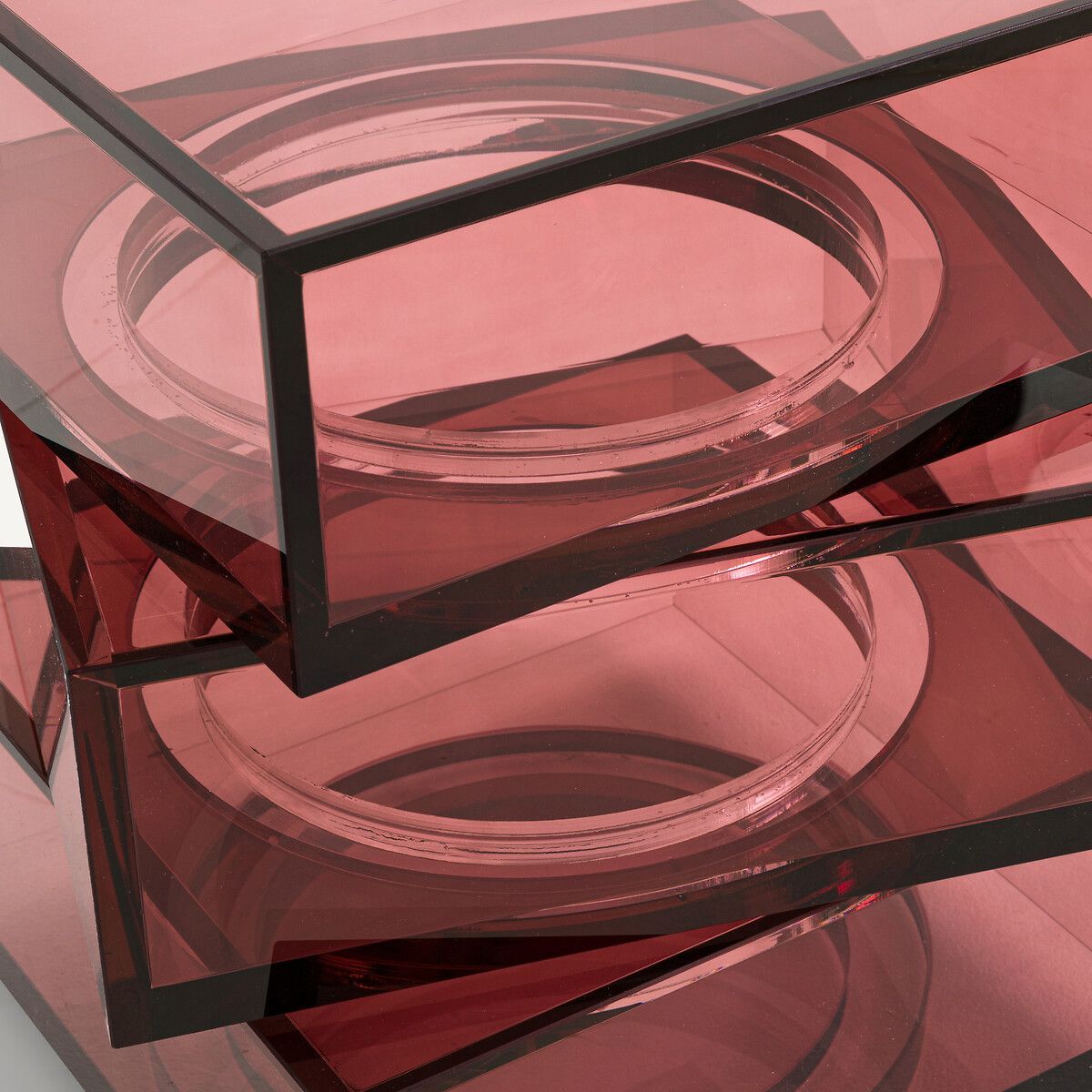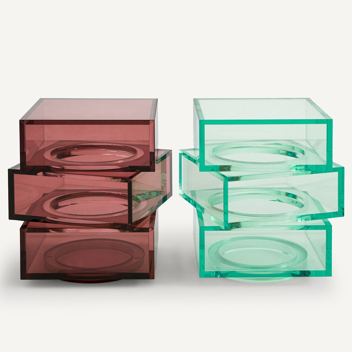 Akrili изготавливает журнальный стол из прозрачного акрилового волокна, окрашенного в массе. Этот элегантный и минималистичный дизайн в стиле 70-х годов сочетает изысканные формы и четкие грани, создавая смелый, но изящный дизайн.