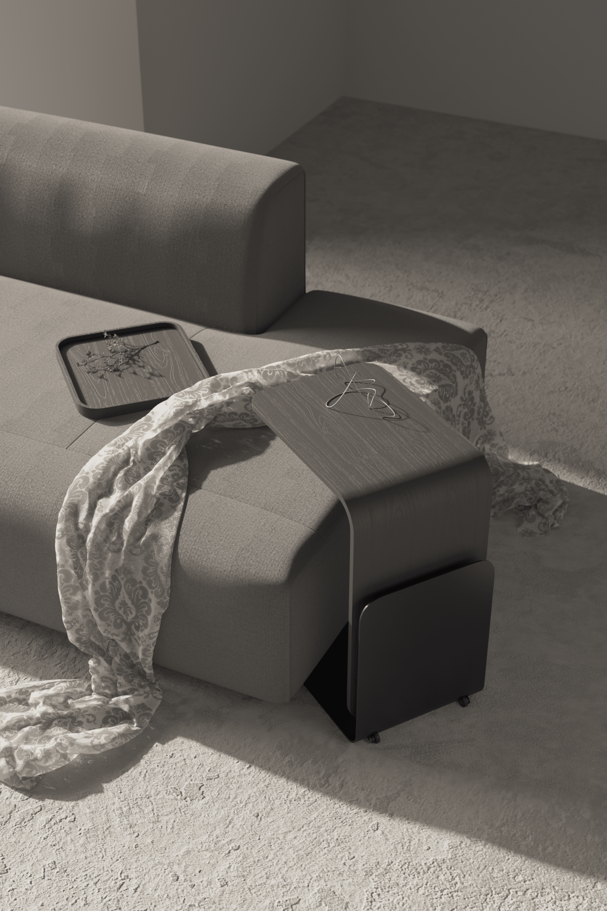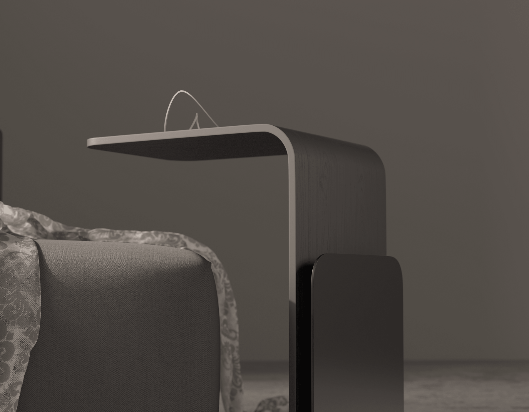 Уникальная конструкция стола позволяет с лёгкостью менять высоту рабочей поверхности и использовать его как с рядом с диваном или креслом, так и в спальне.