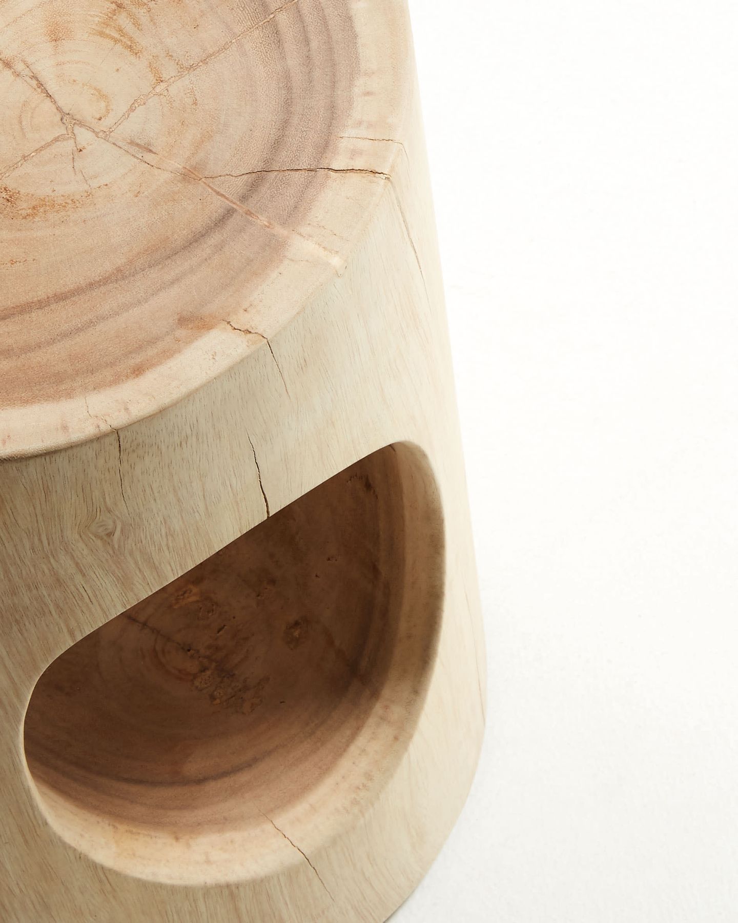 Приставной столик Halker от фабрики La Forma – ручная резка и ценный массив альбиции. Приставной столик Halker станет находкой для поклонников эко- и скандинавского интерьера. Он сделан из цельного массива альбиции, которое произрастает в Индонезии. Кроме ценности материала, здесь стоит обратить внимание на сквозную нишу. При желании, в нее можно поставить яркий аксессуар, и тогда столик «заиграет» по-новому. Столик имеет цилиндрическую форму. Он полностью сделан из массива дерева, без какого-либо покрытия. В центре – сквозное отверстие овальной формы шириной 16 см и длиной 23 см. Оно начинается на высоте 11 см от пола. Благодаря прочности древесной породы, столик способен выдерживать высокие нагрузки, максимум до 130 кг. Поэтому изделие можно использовать не только в качестве столика, но и как табурет. Размеры: ширина – 30 см, высота – 46 см. Вес – 17 кг. Столик допускается эксплуатировать на открытом воздухе, но под навесом. Разрешена только деликатная чистка без применения абразивных средств.