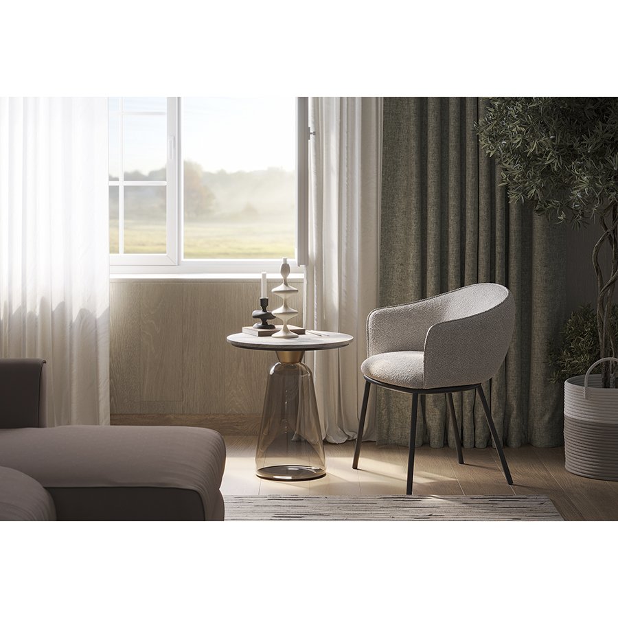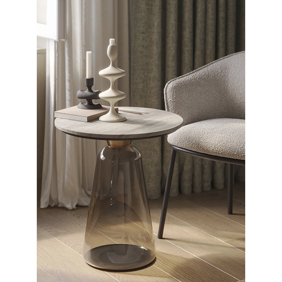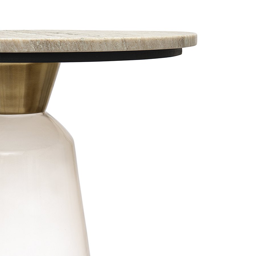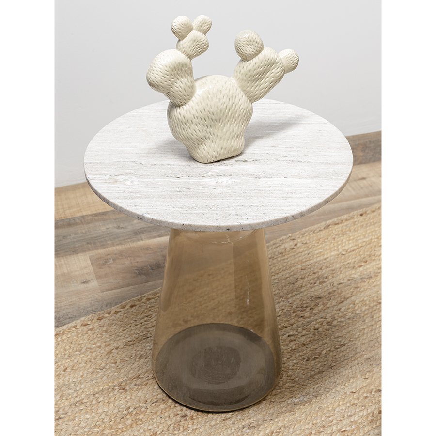 Материалы: столешница — мрамор, основание — стекло. Диаметр: 50 см. Высота: 54 см. Цвет: мрамор/бежевый.
