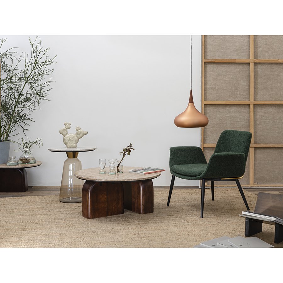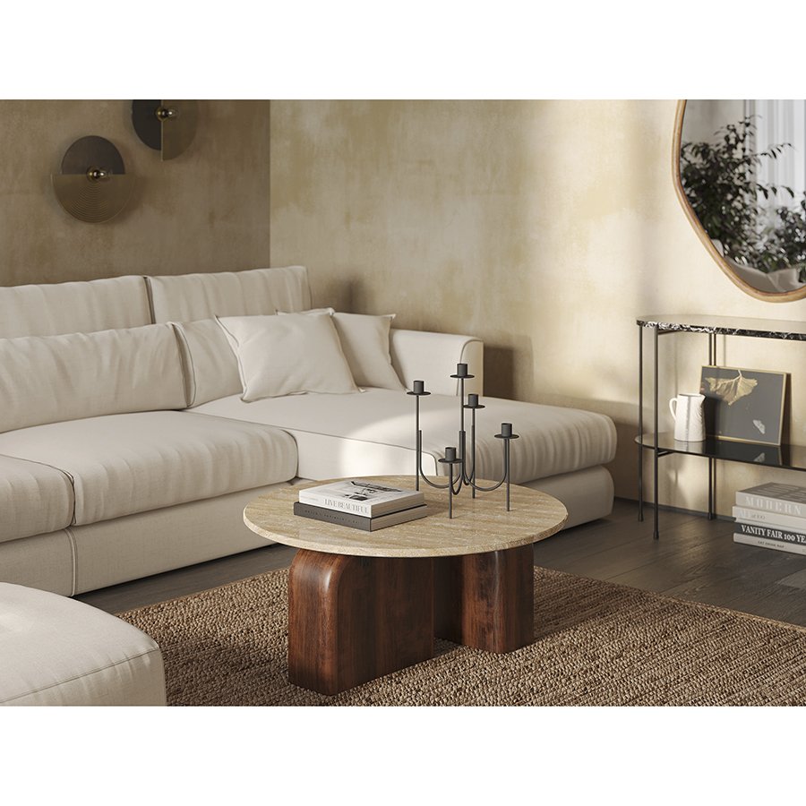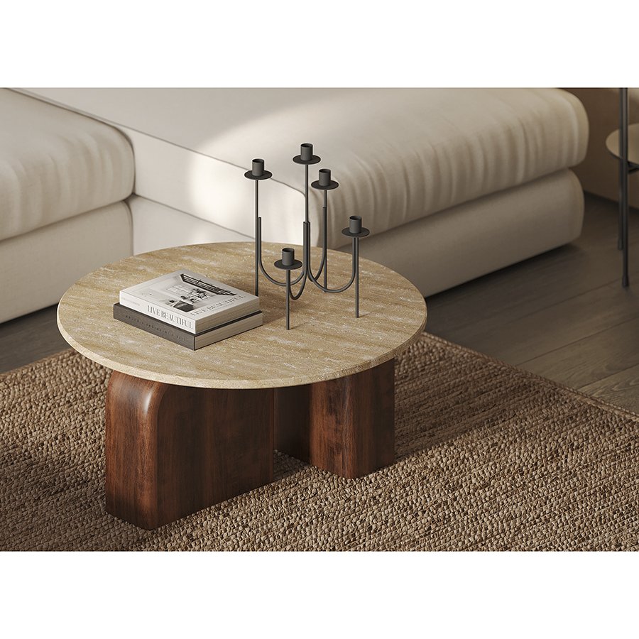 — Нейтральность травертина и естественный оттенок древесины позволяют вписать столик в интерьер, оформленный в любой цветовой гамме.