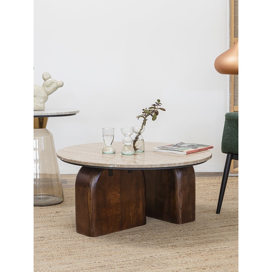 Материал: дерево, травертин. Диаметр: 80 см. Цвет: бежевый/орех.